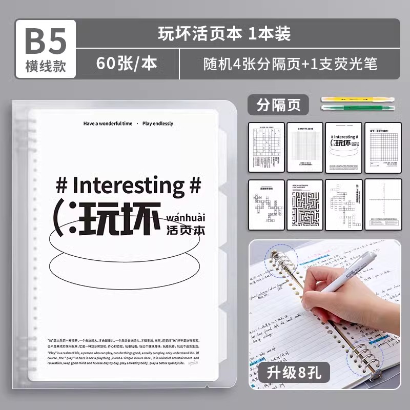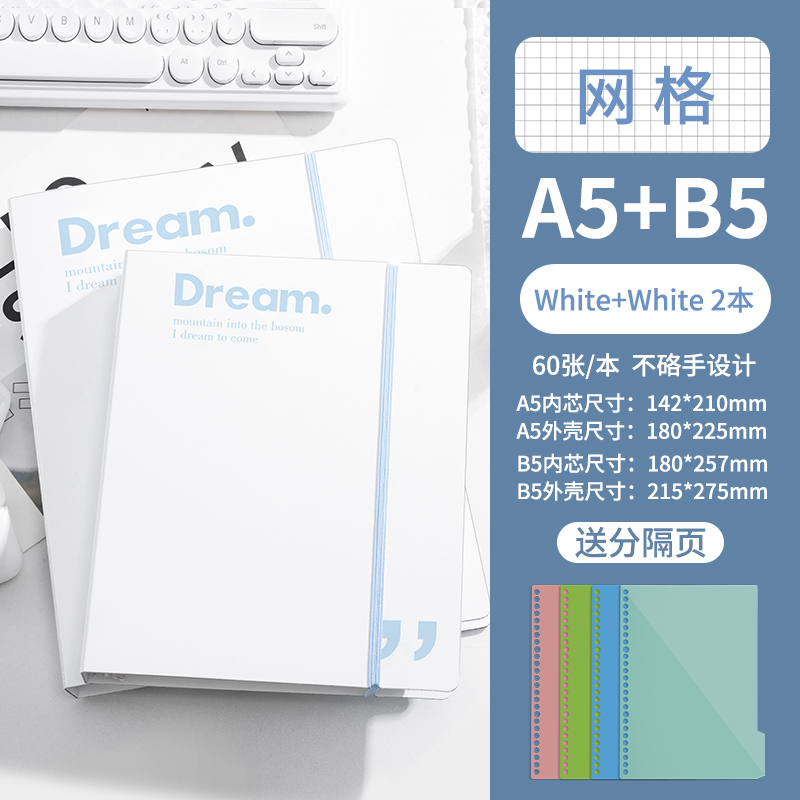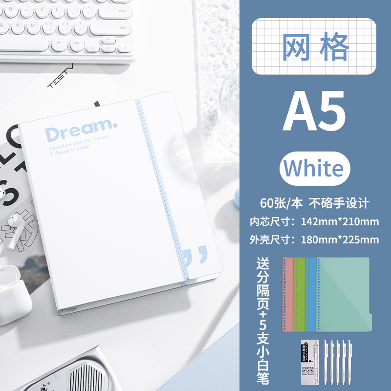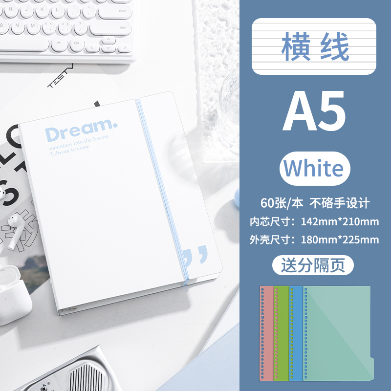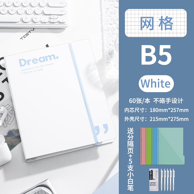 B5-горизонтальная линия Белая поставляется с разделительной страницей + 5 маленьких белых ручек