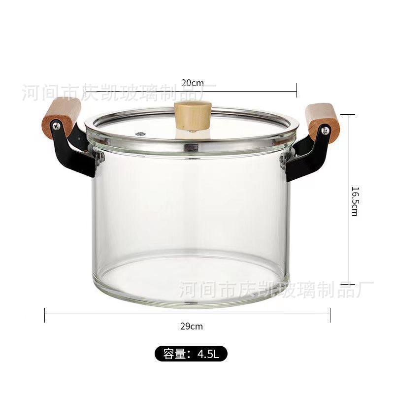 Главная страница > Бытовая стеклянная кастрюля для супа, кастрюля для тушения из боросиликатного стекла, прозрачная кастрюля для супа, можно нагревать на электрической керамической плите, кастрюля большой емкости с двумя ушками и деревянной ручкой