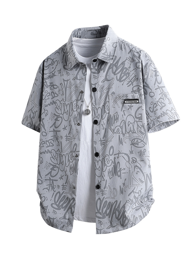 Главная страница > Мужская рубашка с цветочным принтом, короткий рукав, новая модель 2025 года, универсальная рубашка для работы и повседневной носки, американский премиальный летний жакет