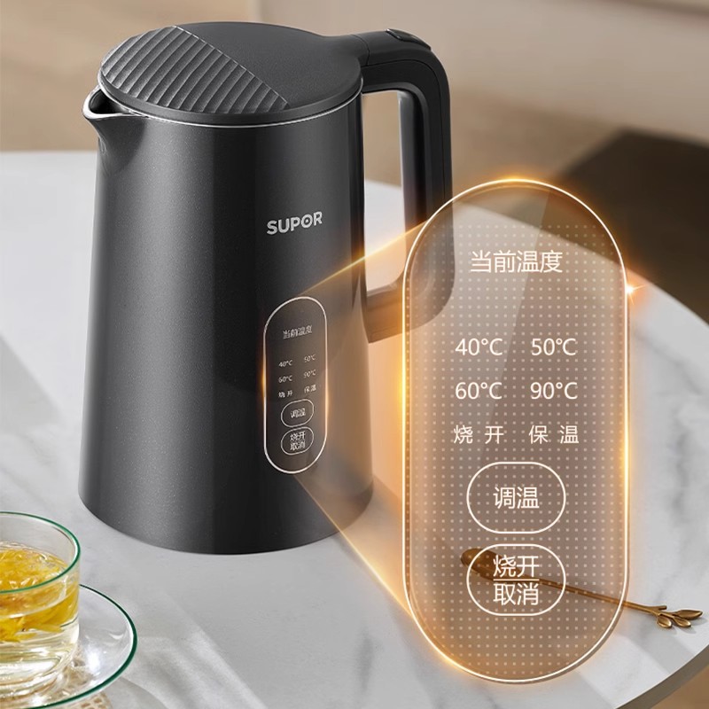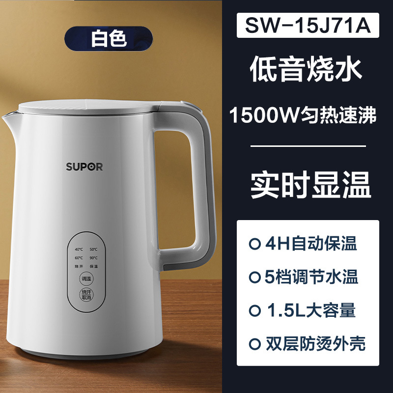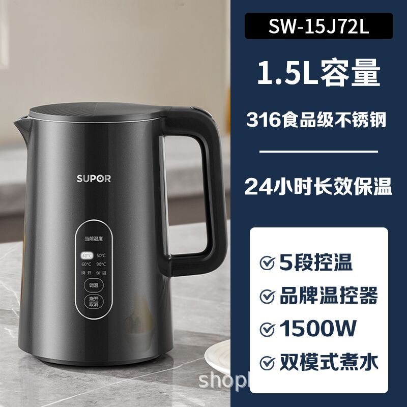 Главная страница > Supor боковая температура 316L Нержавеющая сталь сенсорный 1.5L теплоизоляция Электрический чайник SW-15J72L/15j71a