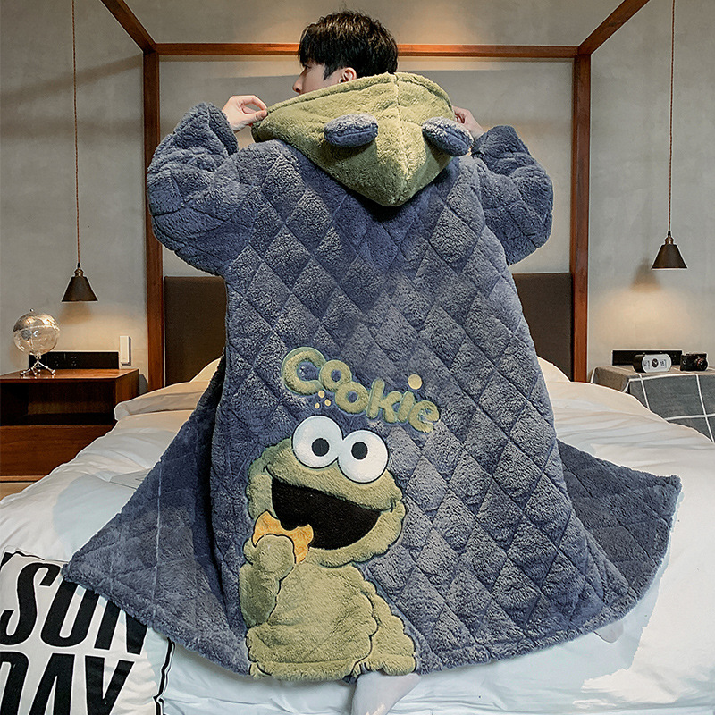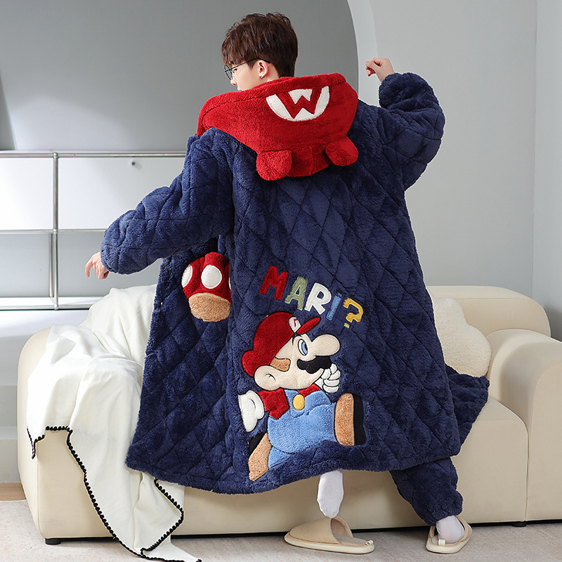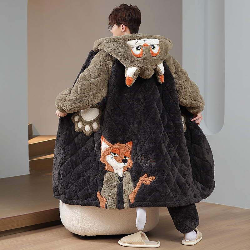 Главная страница > Осенняя и зимняя ночная одежда мужской трехслойный утолщеный хлопковый фланелевый пижама новый коралловый бархат мужской большой размер домашней одежды