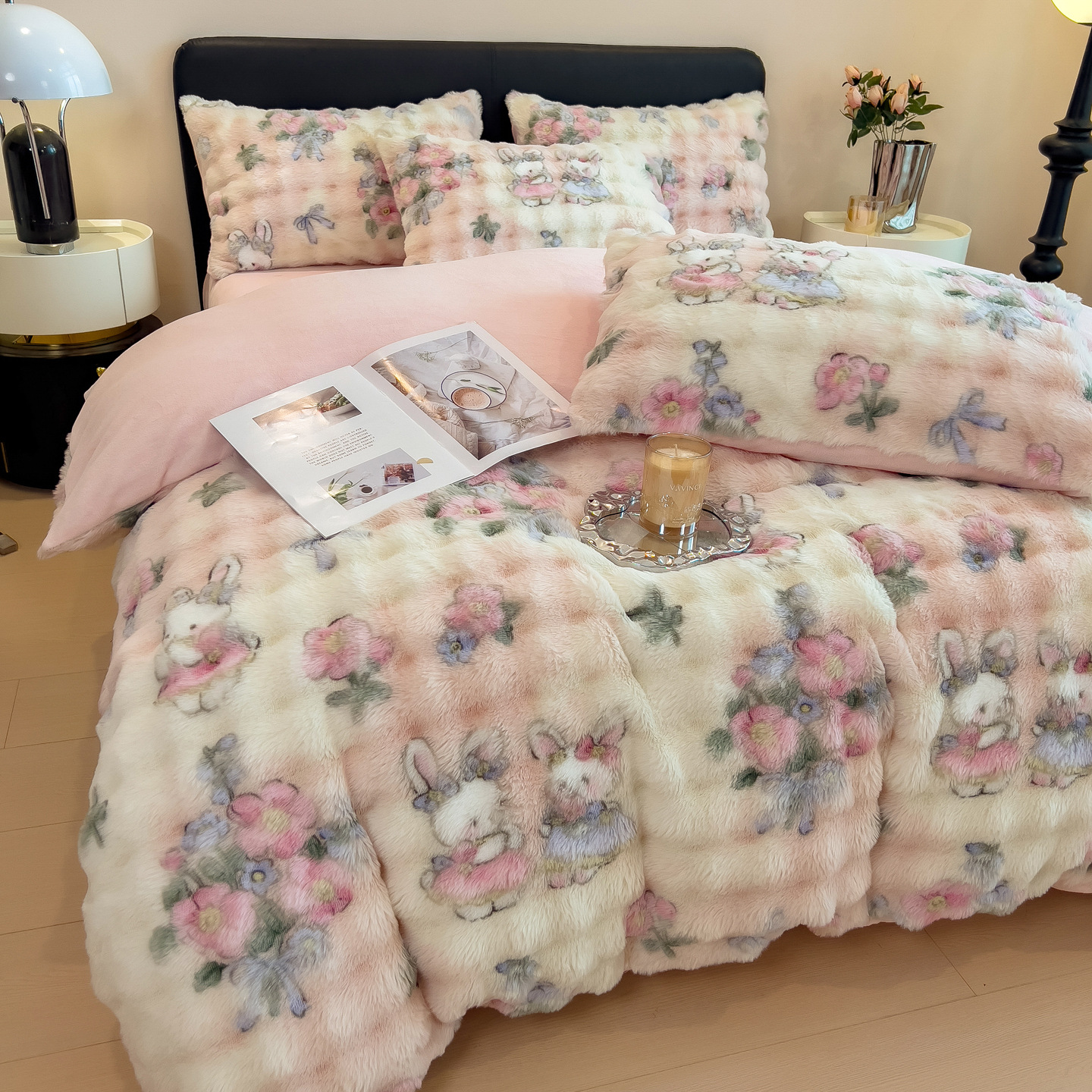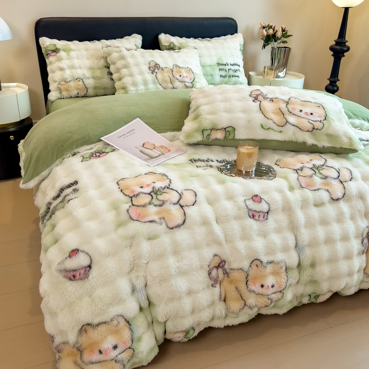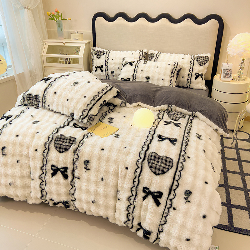 Зимний комплект постельного белья из кроличьего меха и молочного вельвета: утолщенный теплый пододеяльник, простыня, комплект из трех предметов для студенческого общежития, зимнее вельветовое постельное белье