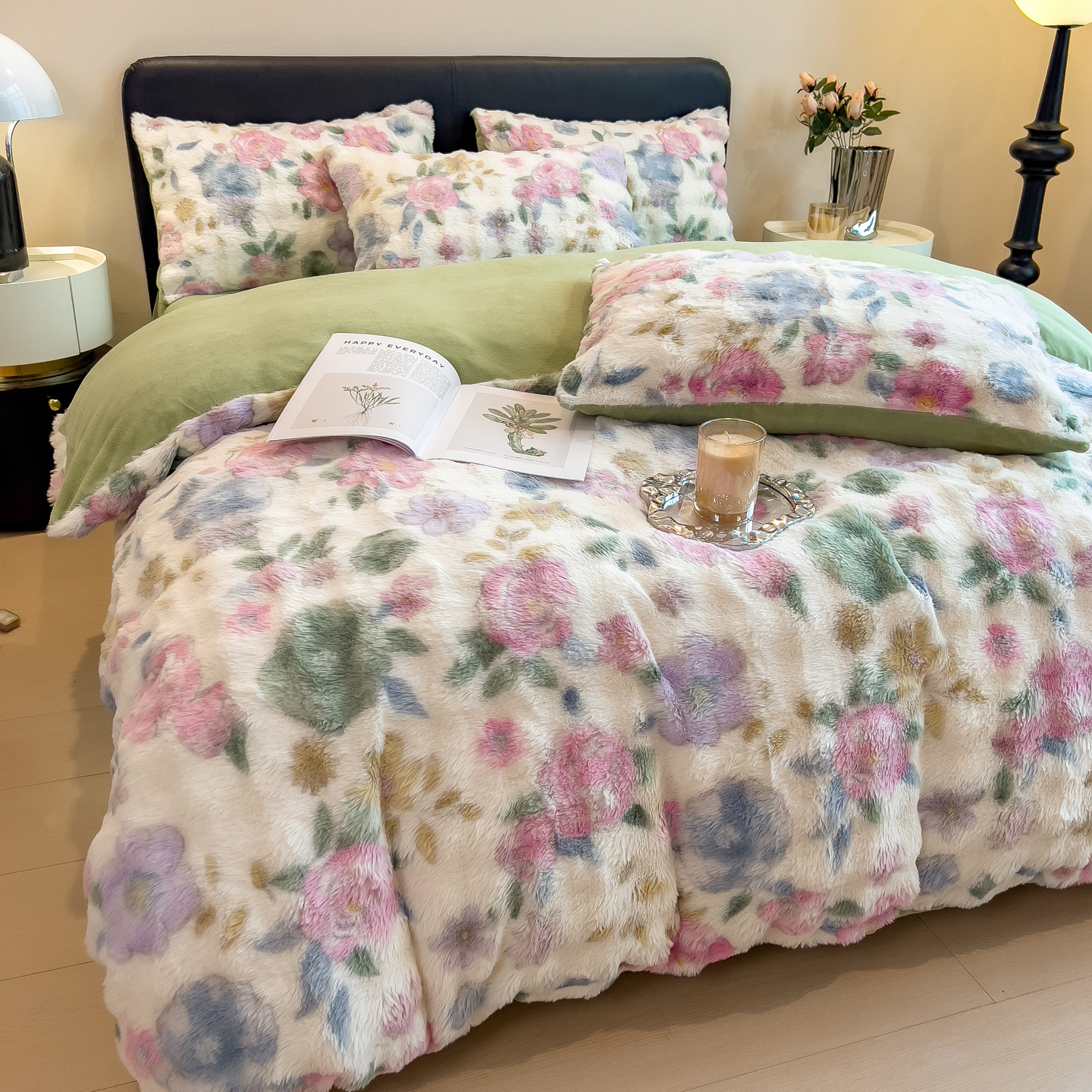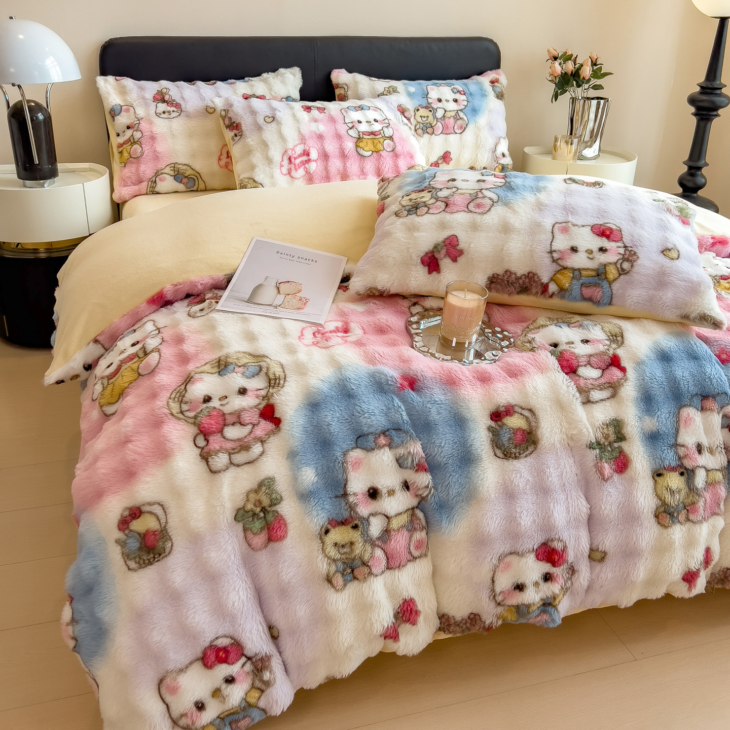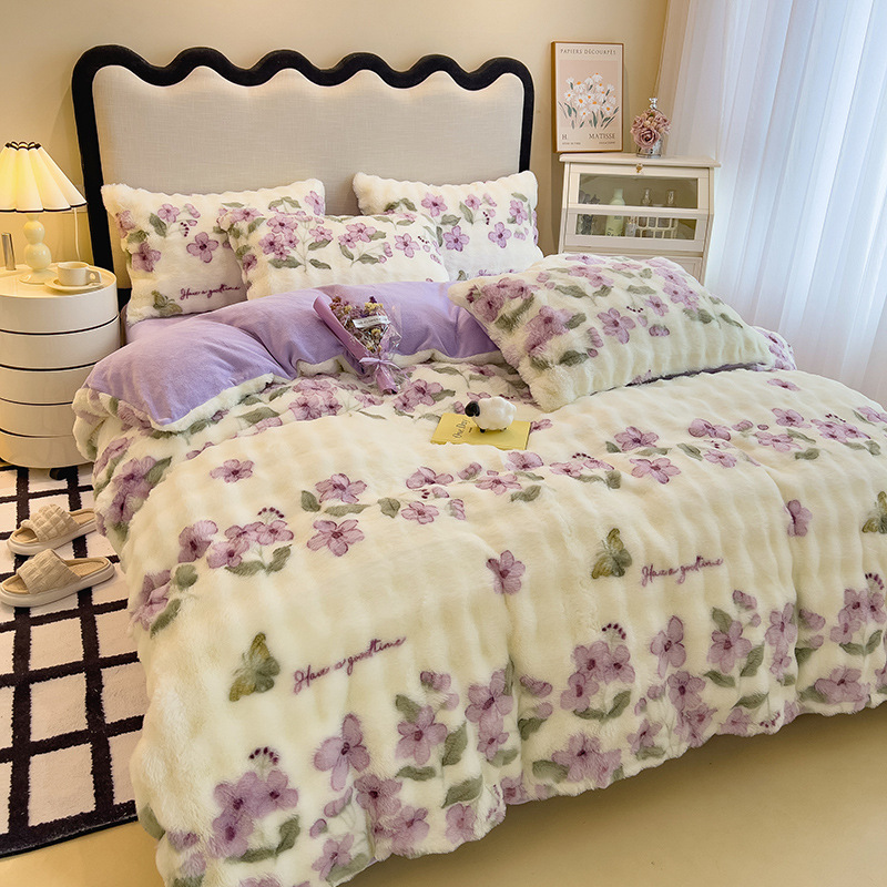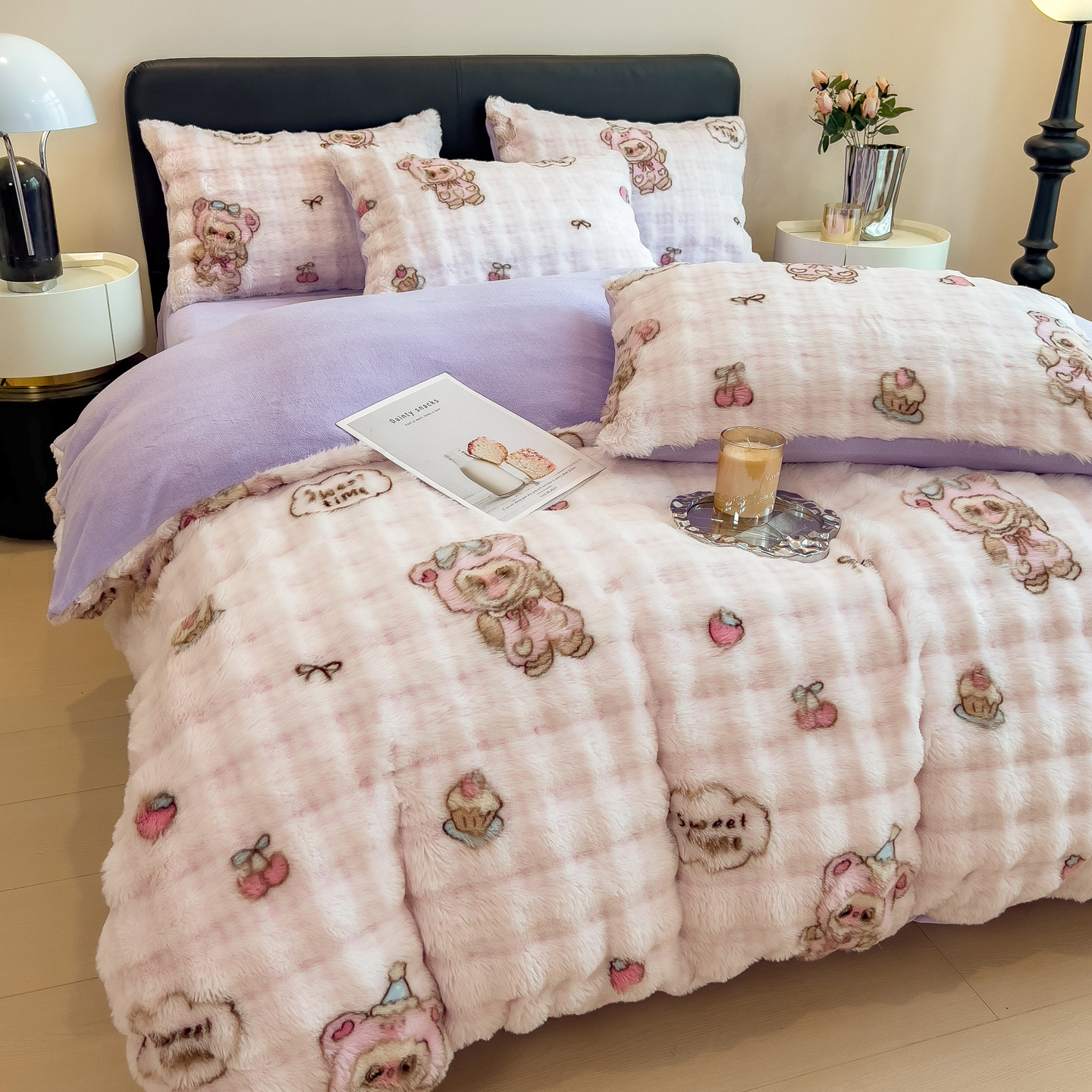 Зимний комплект постельного белья из кроличьего меха и молочного вельвета: утолщенный теплый пододеяльник, простыня, комплект из трех предметов для студенческого общежития, зимнее вельветовое постельное белье