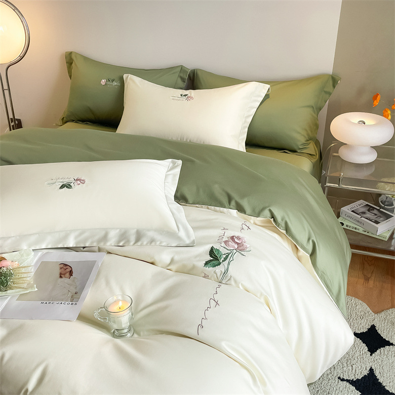 Главная страница > Элитный комплект из четырех предметов из чистого хлопка с длинными волокнами (180 нитей), включающий хлопковое покрывало и простыню с вышивкой, а также трехкомпонентный комплект из синьцзянского хлопка для сна без одежды.