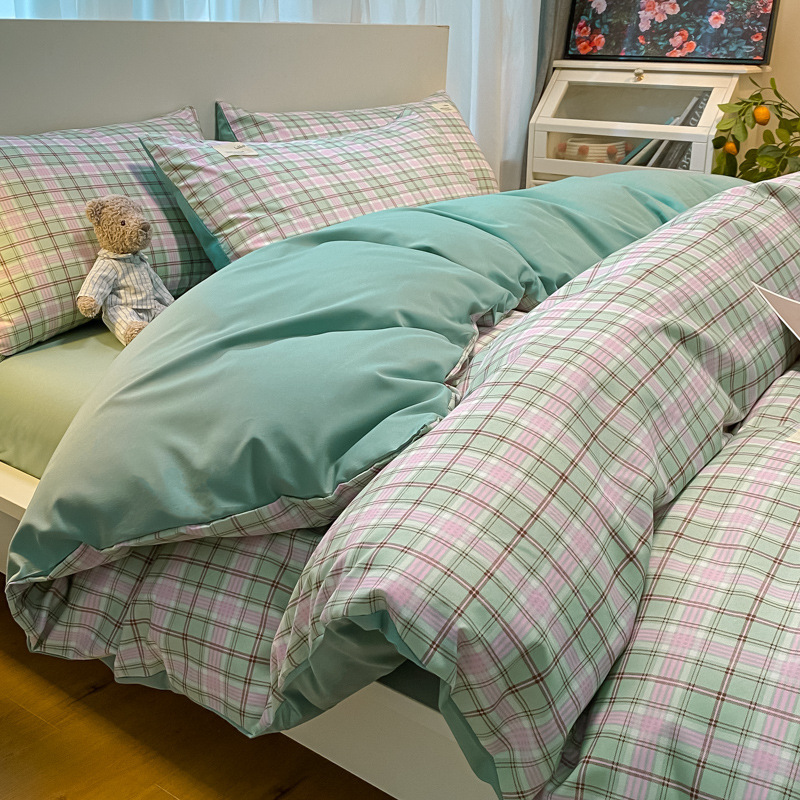 Простой хлопчатобумажный набор из четырех частей 40 палочек в японском стиле утолщенный цветной набор из трех частей простыней в клетку общежития