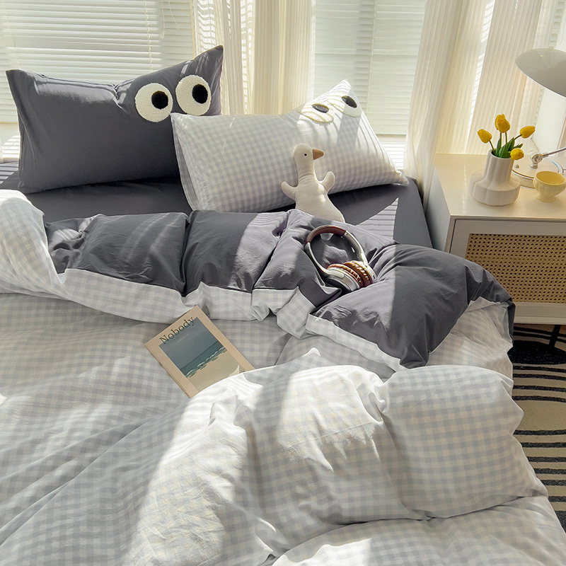 Главная страница > Простой хлопчатобумажный набор из четырех частей 40 палочек в японском стиле утолщенный цветной набор из трех частей простыней в клетку общежития