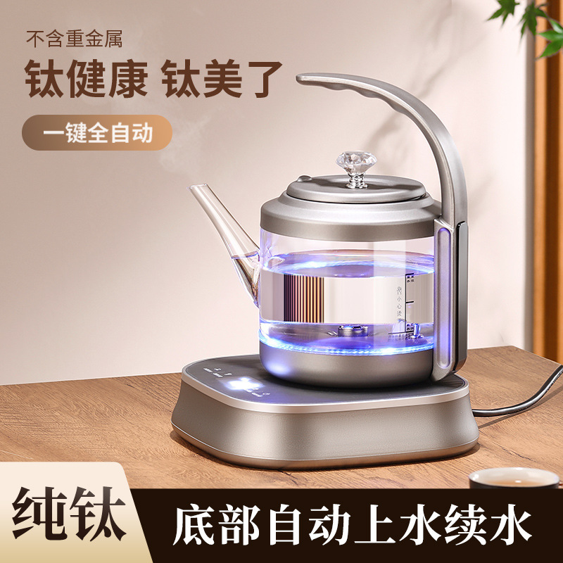 Главная страница > Электрический чайник из чистого титана со встроенным столиком для заваривания чая для дома и офиса, чайник большой емкости для кипячения воды, титановый чайный набор.
