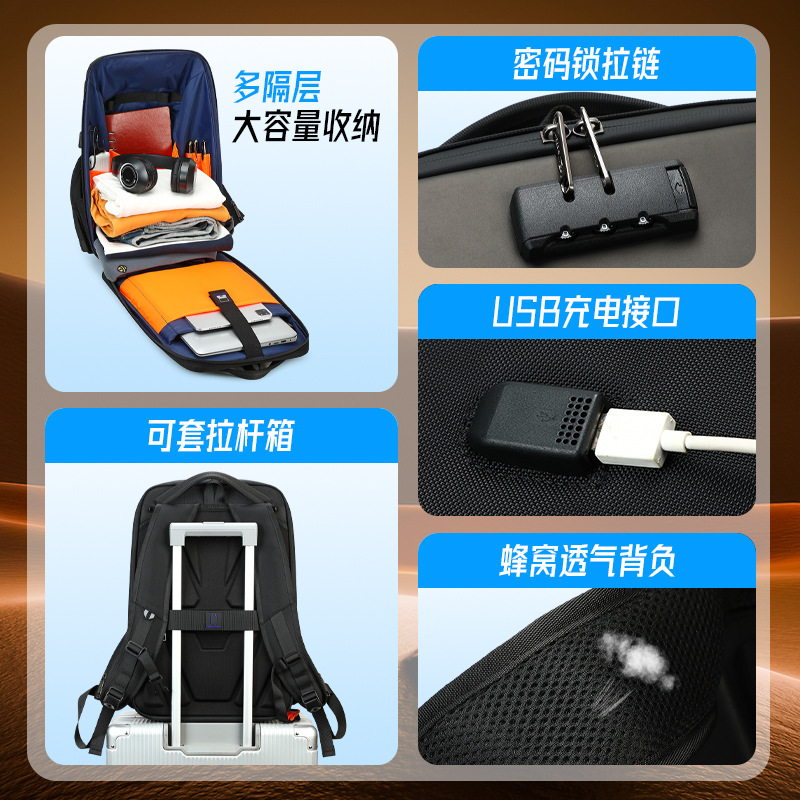 Деловой рюкзак для мужчин, водонепроницаемый рюкзак большой вместимости для деловых поездок, многофункциональный, с защитой от кражи, для ноутбука, с дышащей спинкой.