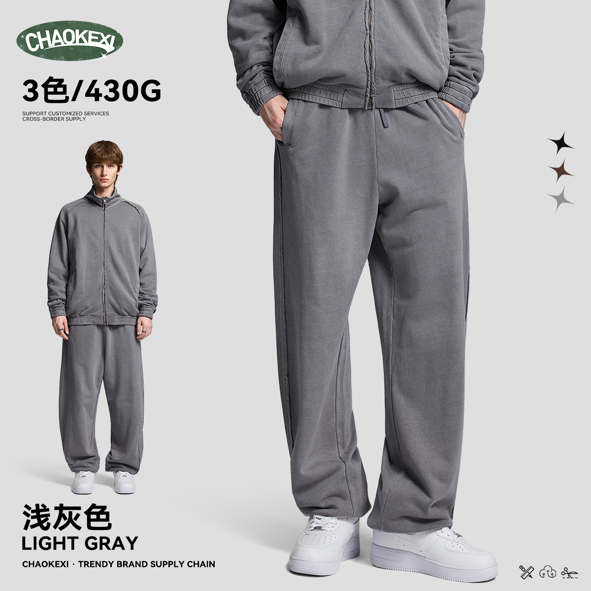 Главная страница > Комплект спортивной одежды для мужчин, осень-зима, в американском стиле, с длинным воротником-стойкой в ретро-стиле, из чистого хлопка, свободная куртка с длинными рукавами и брюки для мужчин и женщин.