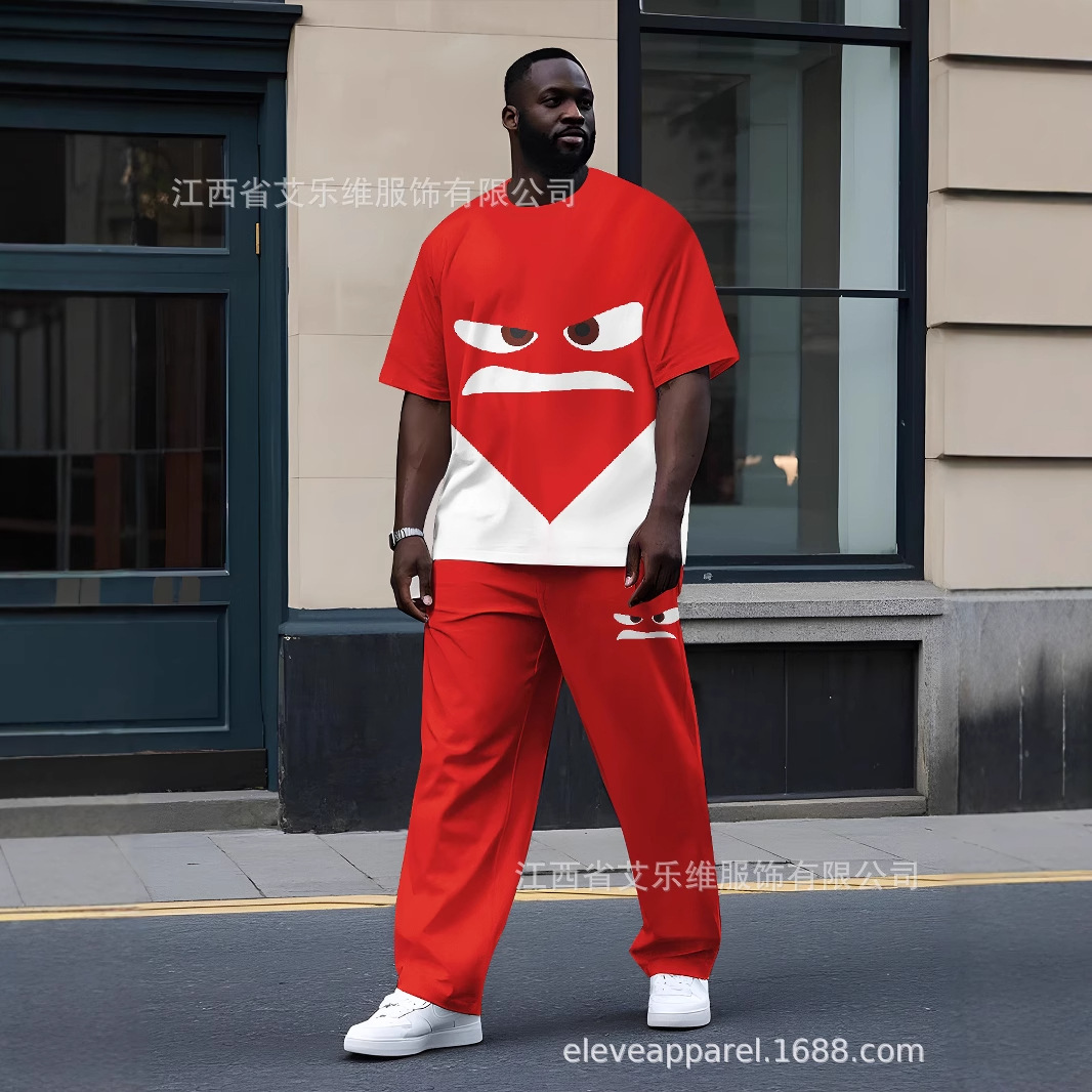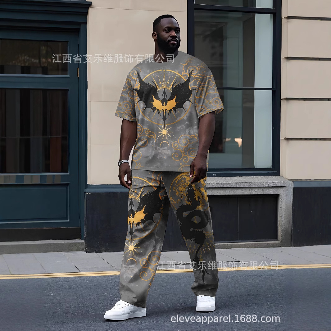 Мужской костюм с круглым вырезом и брюками, 3D-печать, американский стиль, уличный стиль, спортивный набор, горячая распродажа