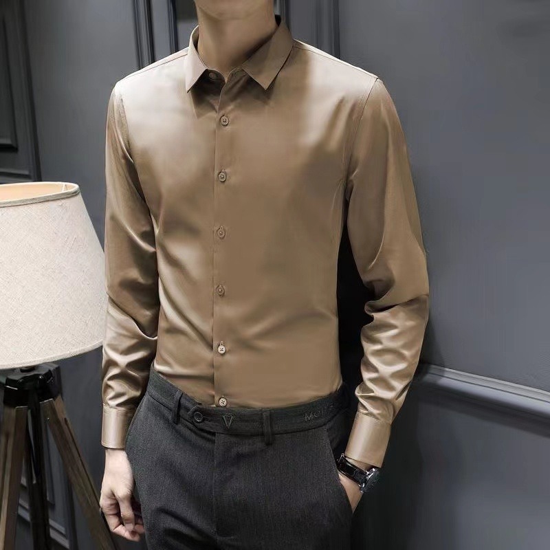 Амазонка четырехсторонняя эластичная рубашка мужская тонка с длинными рукавами сплошной цвет минималистская мужская рубашка бизнес-повседневная мужская одежда