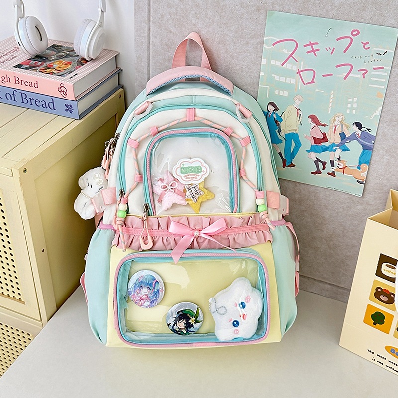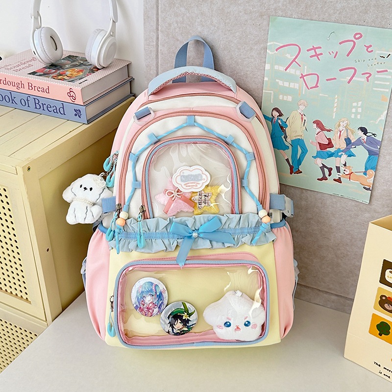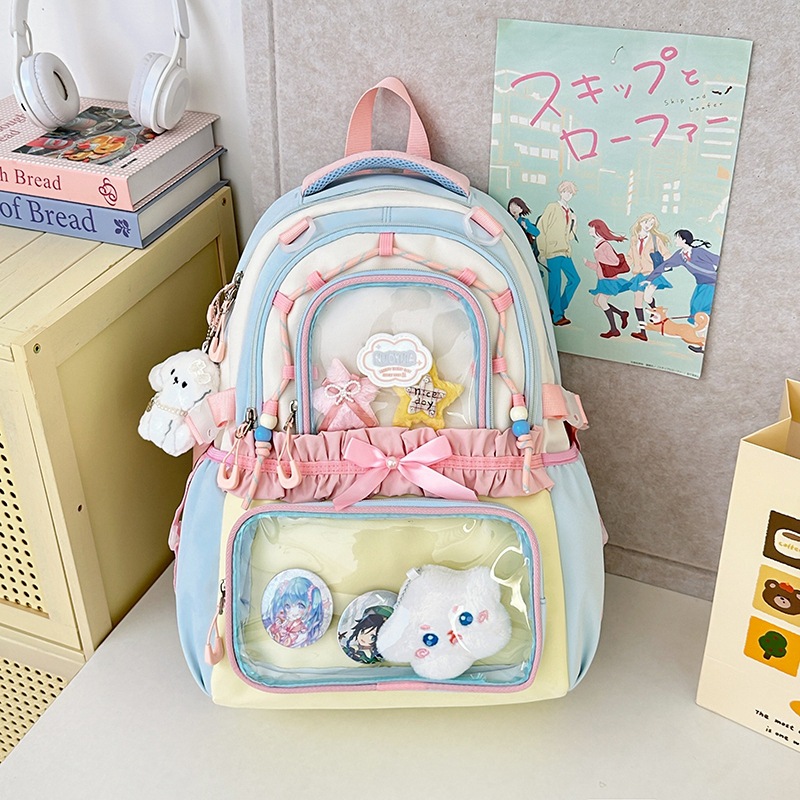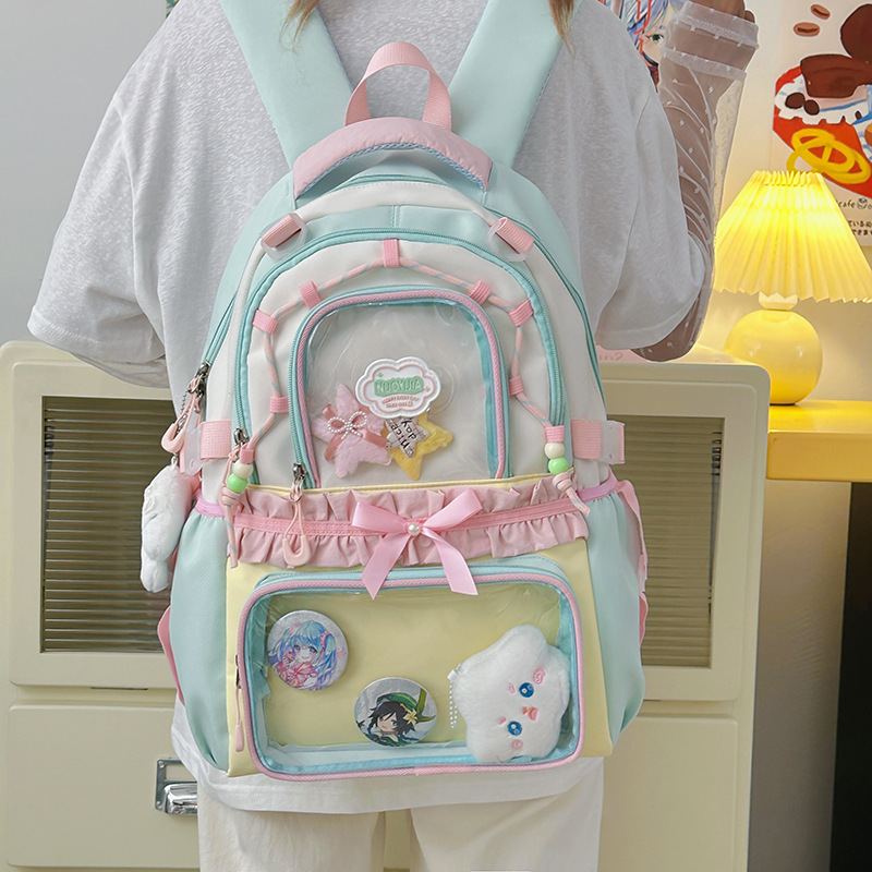 Главная страница > Высококачественный модный рюкзак в японском стиле с плиссированным кружевом для учениц средних и старших классов, рюкзак большой вместимости.
