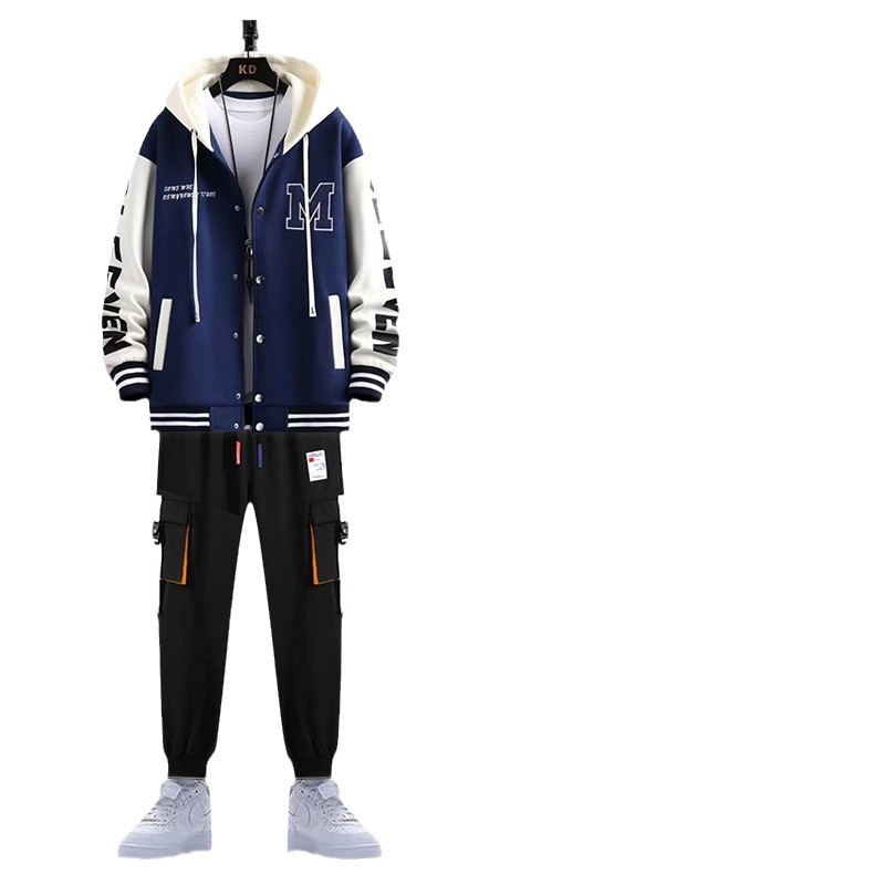 Комплект из трех предметов: толстовка W45 синяя (плюс бархат) + брюки RK1