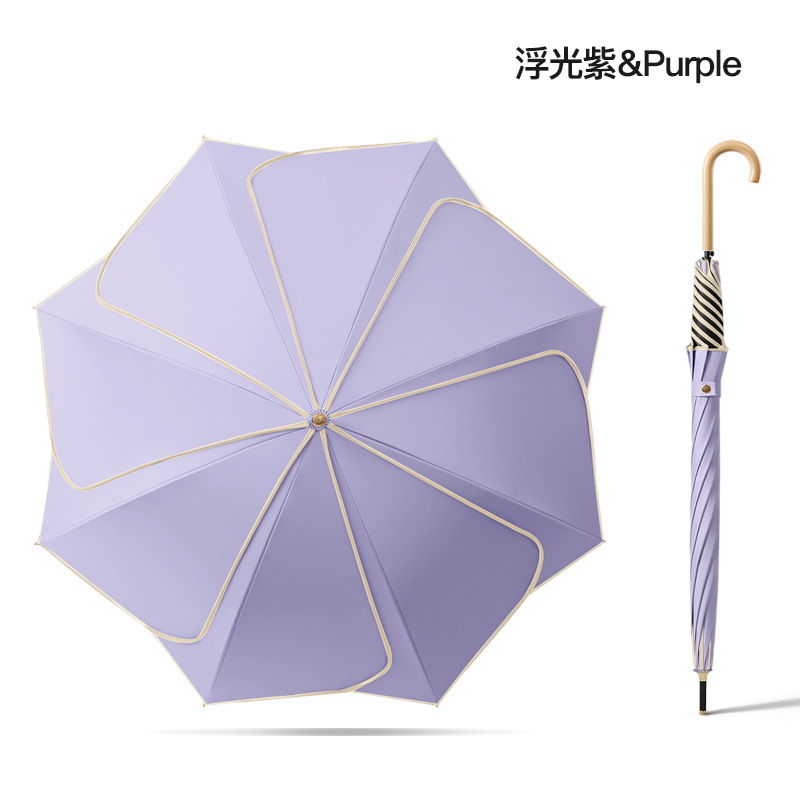 [Кожаная изогнутая ручка] Прямой зонт с 8 косточками и деревянной ручкой в виде лепестка - плавающий фиолетовый