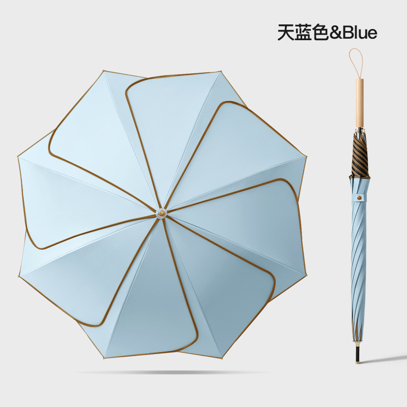 [Прямая деревянная ручка] Прямой зонт с 8 лепестками-голубой