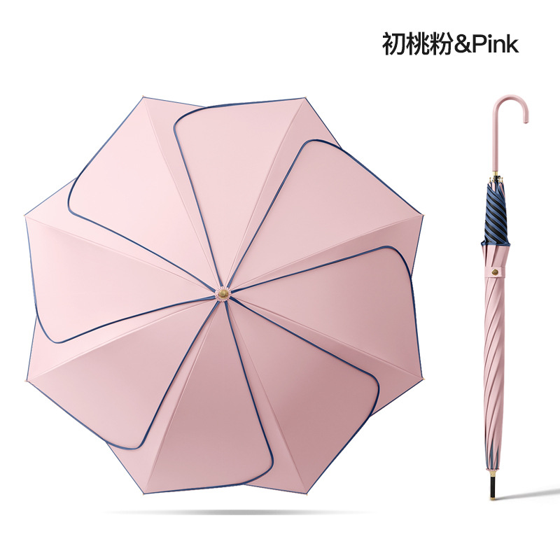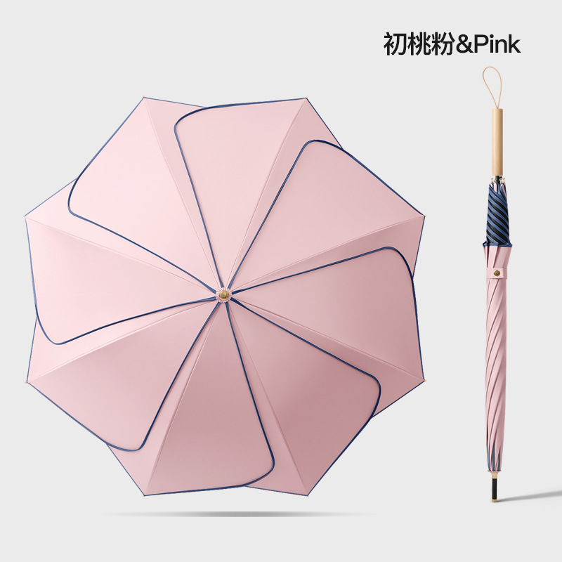 [Кожаная изогнутая ручка] Прямой зонт с 8 лепестками-персиково-розовый Чу