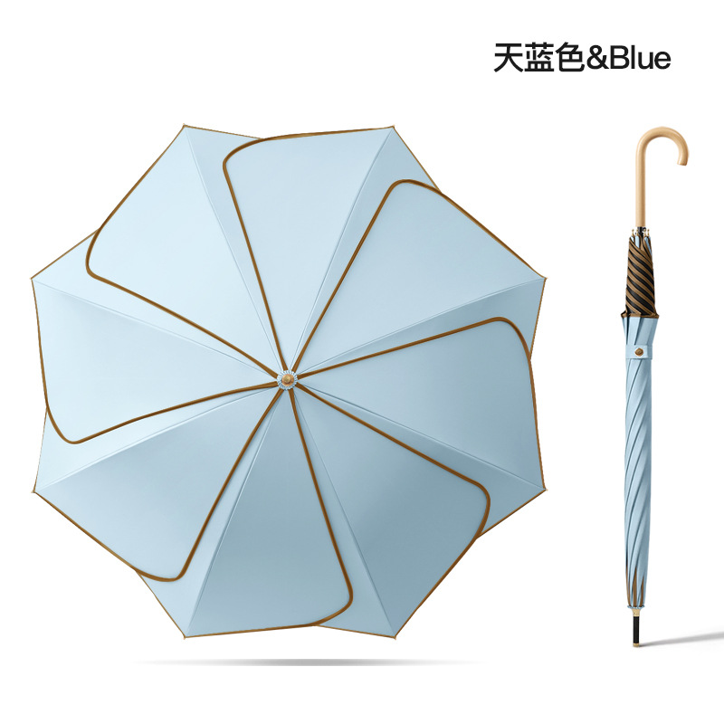 [Кожаная изогнутая ручка] Прямой зонт с 8 лепестками — небесно-голубой