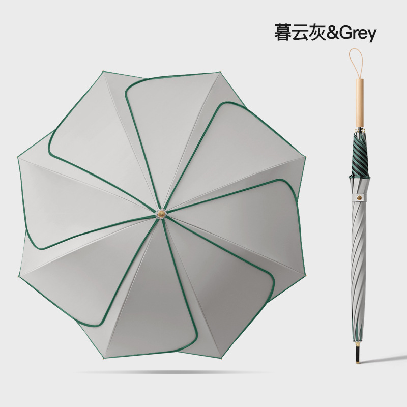 [Прямая деревянная ручка] Прямой зонт с 8 лепестками — серый Муйун