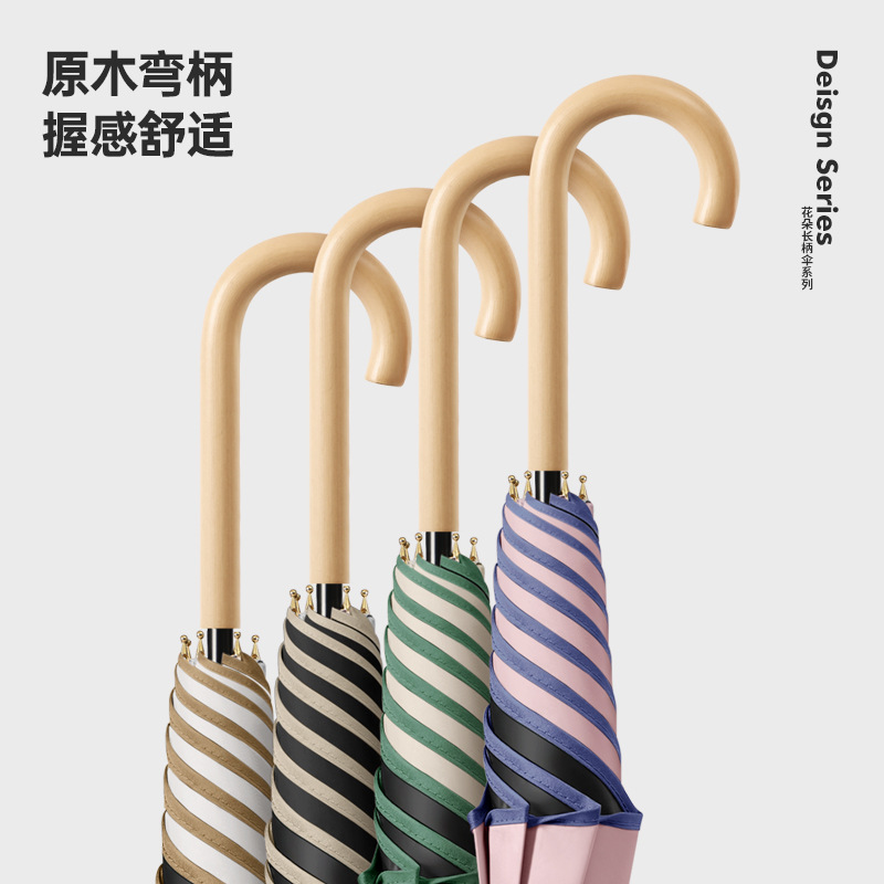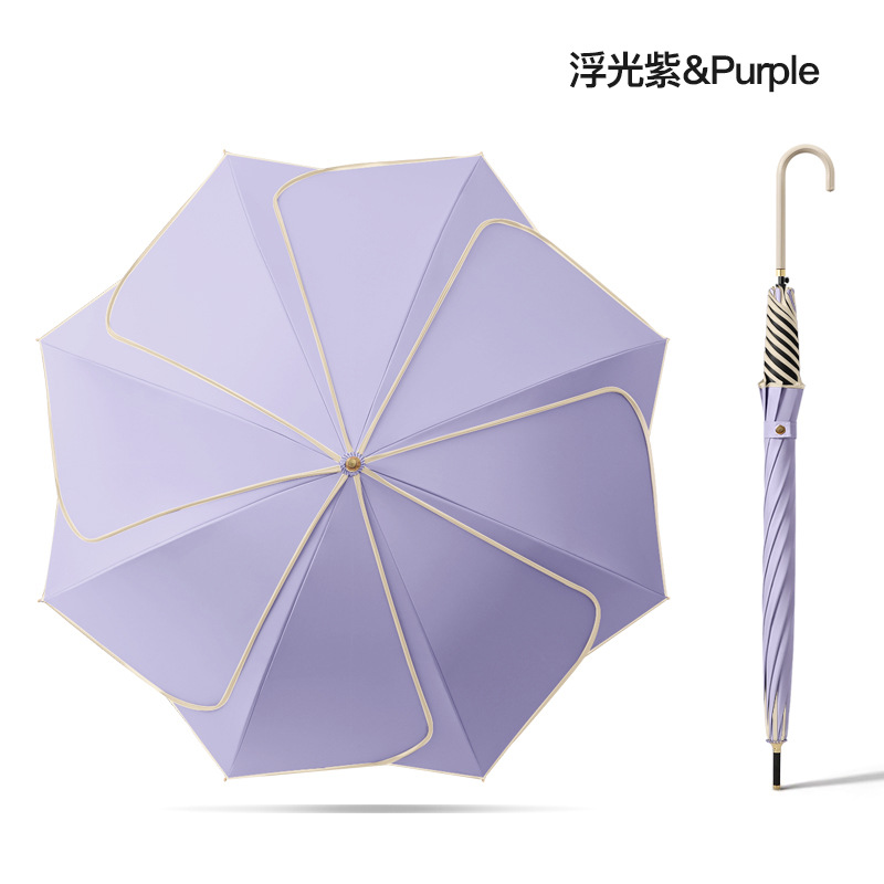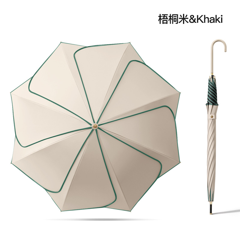 [Кожаная изогнутая ручка] Прямой зонт с 8 лепестками - рис Вутонг