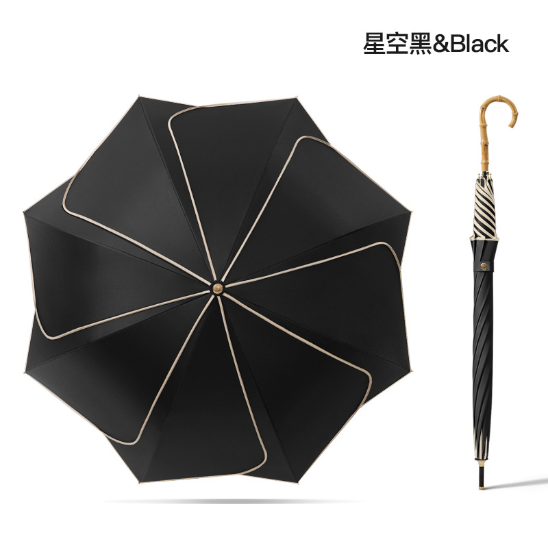 [Кожаная изогнутая ручка] Прямой зонт с 8 лепестками и звездным небом, черный