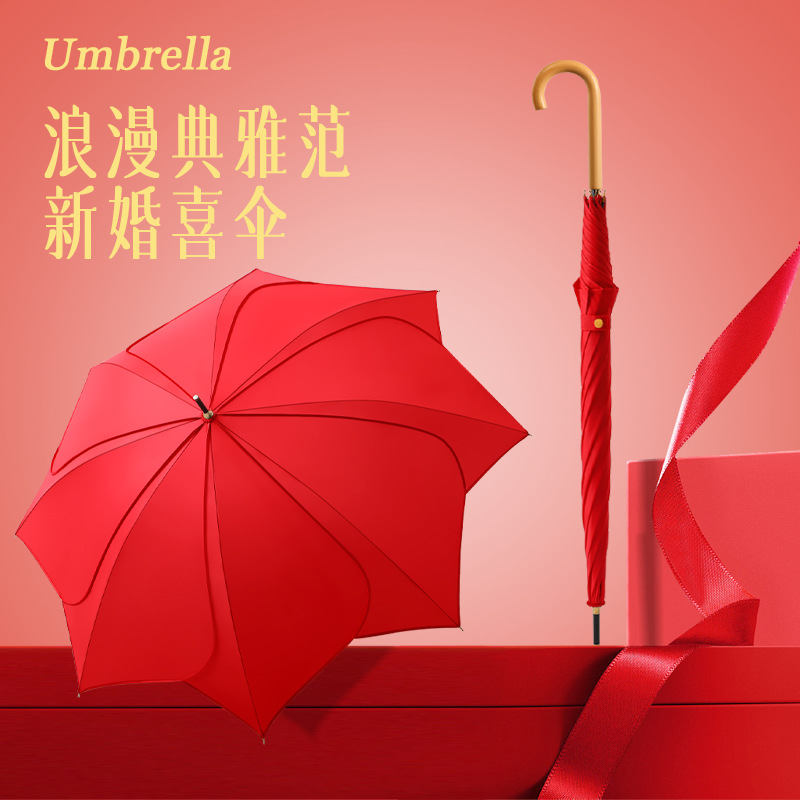 【Деревянная изогнутая ручка】Зонт «Лепестки невесты» - Красный