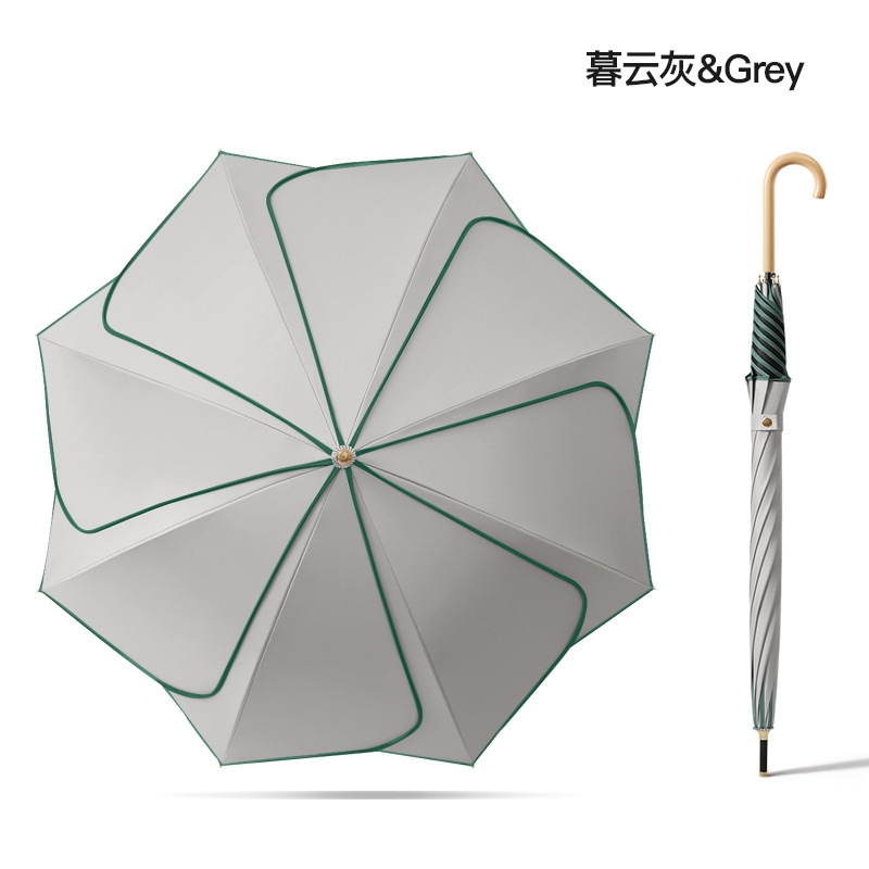 [Кожаная изогнутая ручка] Прямой зонт с 8 лепестками — серый Муйун