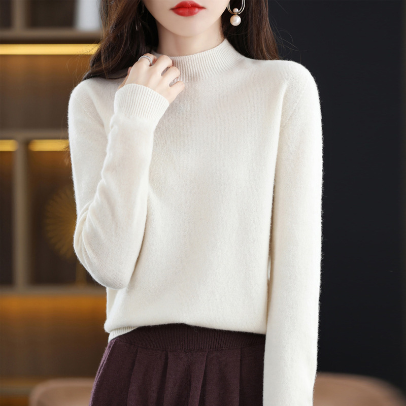 Главная страница > Шерстяной микс 2024 осень-зима новая женская линия готовая одежда бесшовный полувысокий воротник мягкий клейкий трикотажный нижний свитер