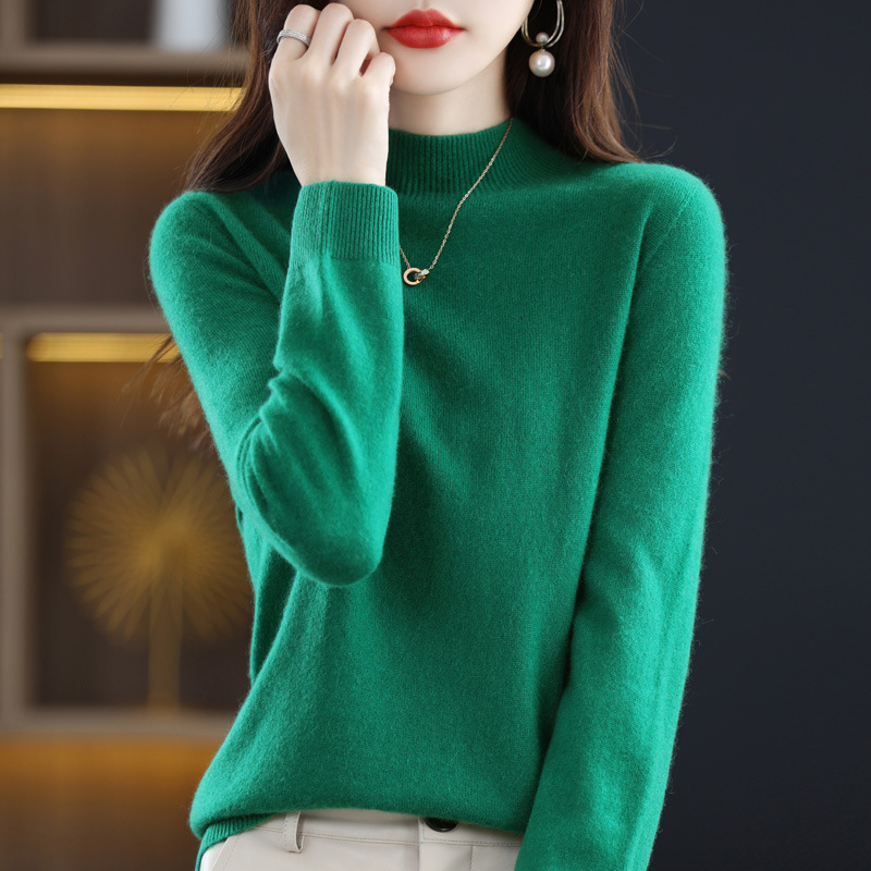 Шерстяной микс 2024 осень-зима новая женская линия готовая одежда бесшовный полувысокий воротник мягкий клейкий трикотажный нижний свитер
