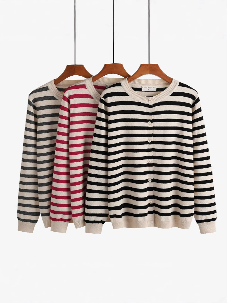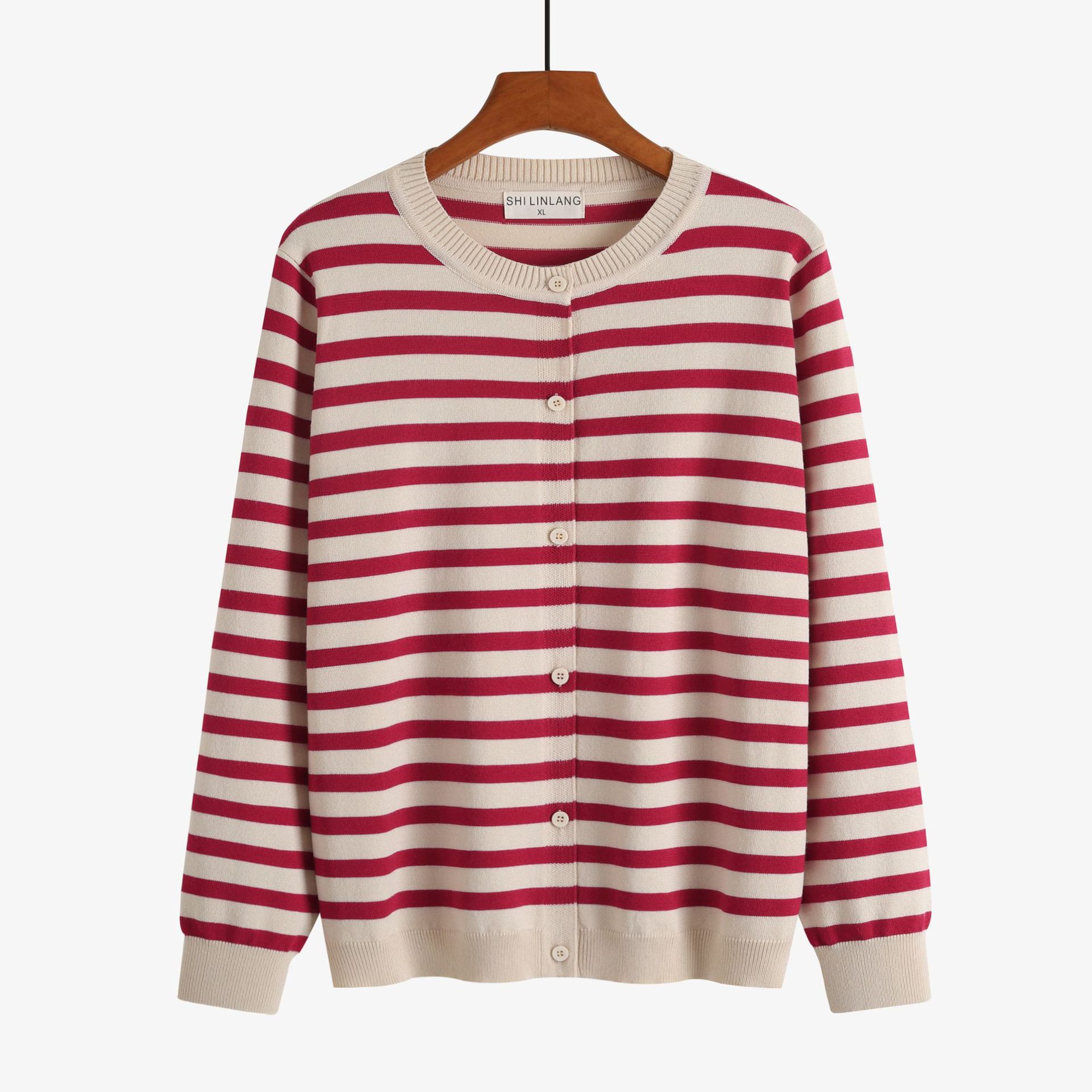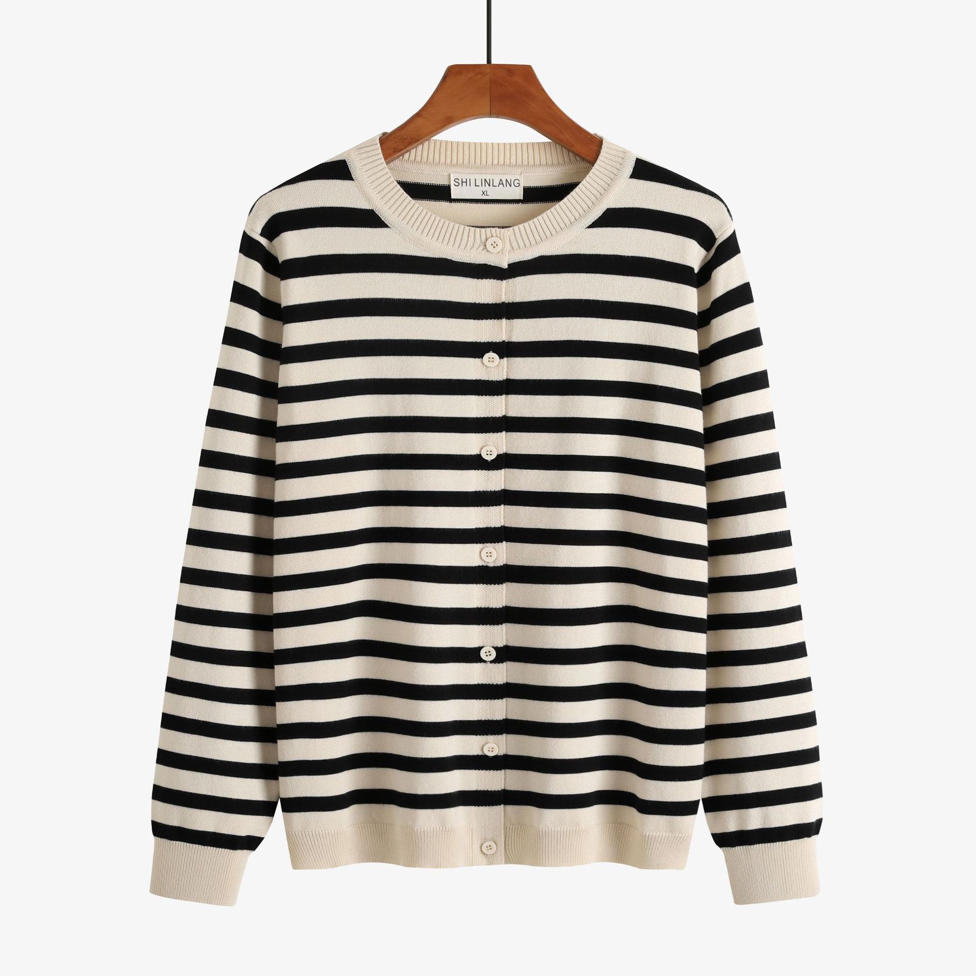 Главная страница > Европейский и американский размер плюс размер, толстый мм, ленивый стиль, полосатый трикотаж с длинными рукавами, женский весенне-осенний новый трикотаж, свободный маленький кардиган, куртка