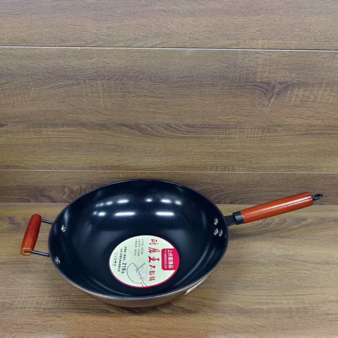 Главная страница > 32 см, 34 см износостойкая кастрюля для приготовления пищи с плоским дном, бытовая кастрюля без масляного дыма, деревянная ручка, кастрюля для приготовления пищи