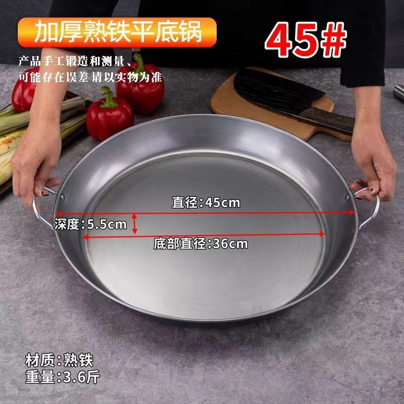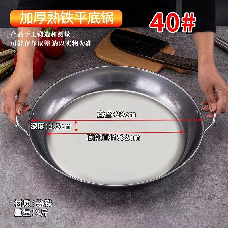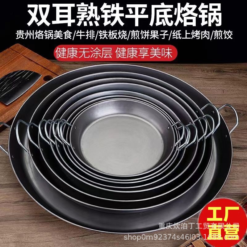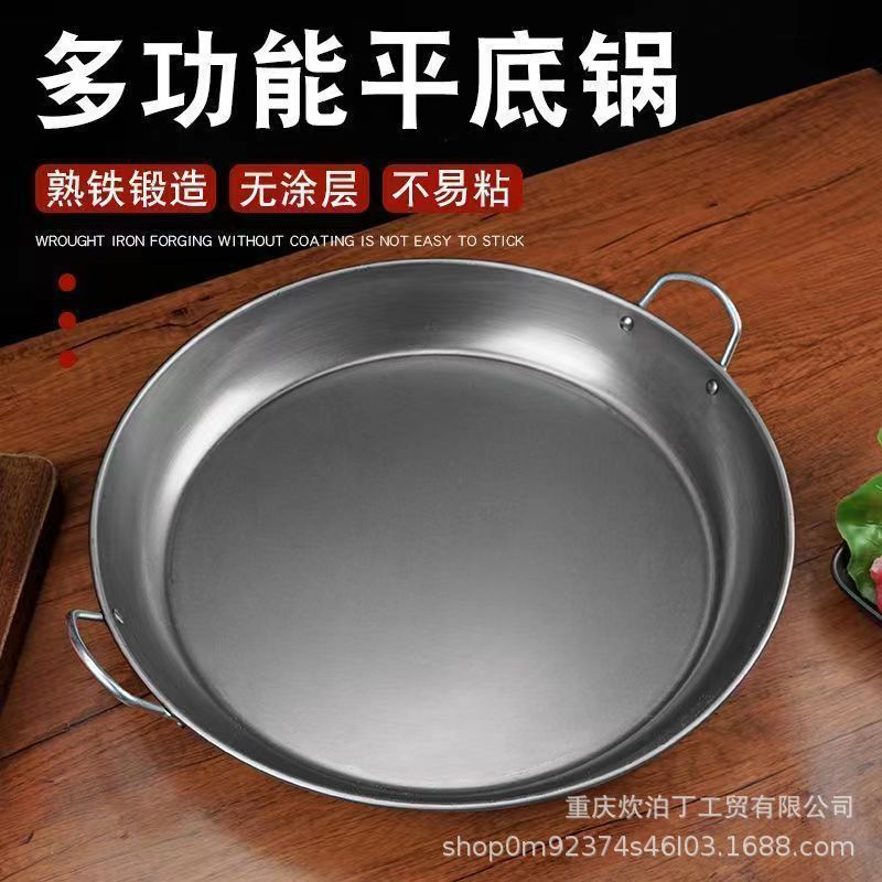 Главная страница > Индивидуальная жареная картофельная кованая кастрюля, бытовая газовая плита, индукционная плита, универсальная большая плоская нижняя часть, коммерческая сковорода с двумя ушками без покрытия