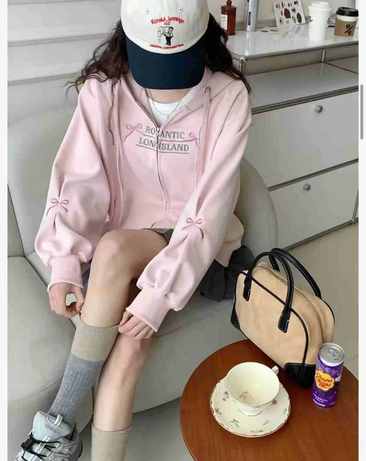 Главная страница > Рукав лук маленький дизайн чувство 2025 весенний свободный кардиган с капюшоном на молнии свитер женский фонарь рукав пальто корейский