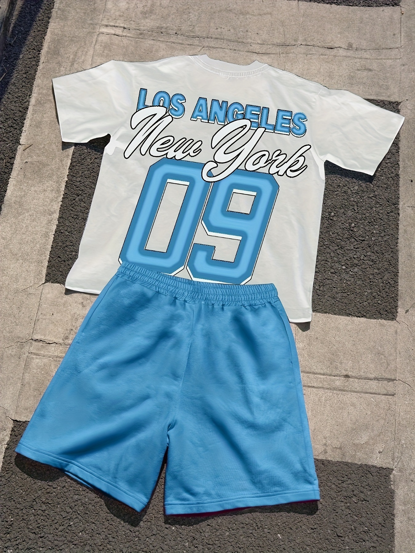 Главная страница > Летний мужской костюм с цифровым принтом в виде букв, футболка с коротким рукавом и шорты, новый модный комплект для трансграничного экспорта