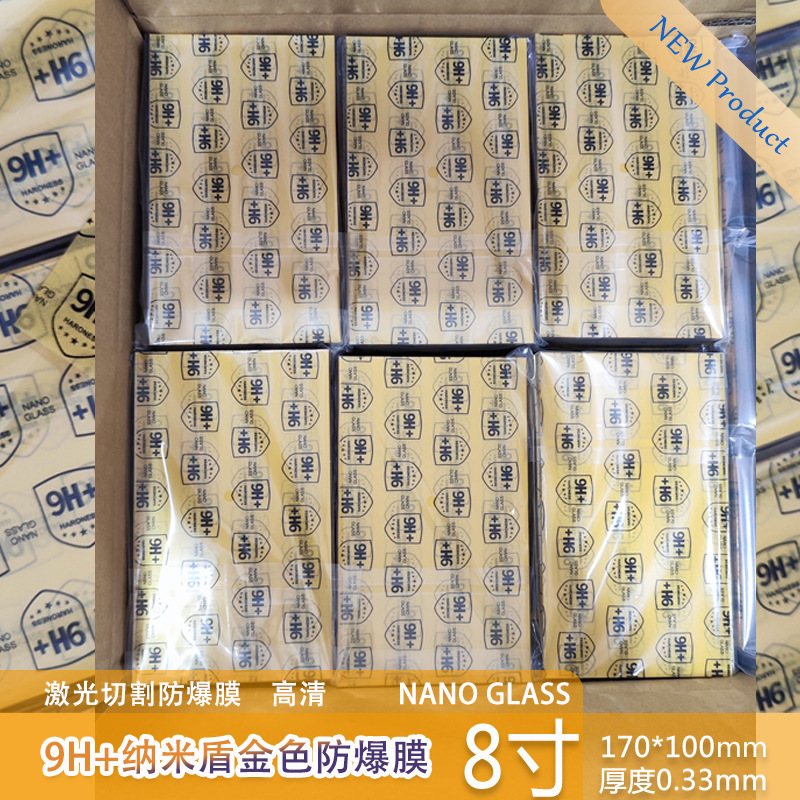 Главная страница > Лазерная резка 9H + нано-экран Золотая Взрывозащищенная пленка Универсальный Режущий материал Пленка для мобильного телефона высокой четкости Высококлейкая, устойчивая к падению 8 дюймов