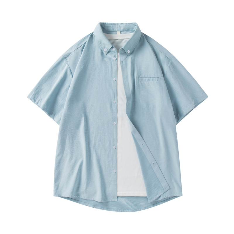 Главная страница > Новая модная рубашка мужской летний рыхлый темперамент молодежный модный простой чистый цвет прилив пять рукавов литературный ленивый