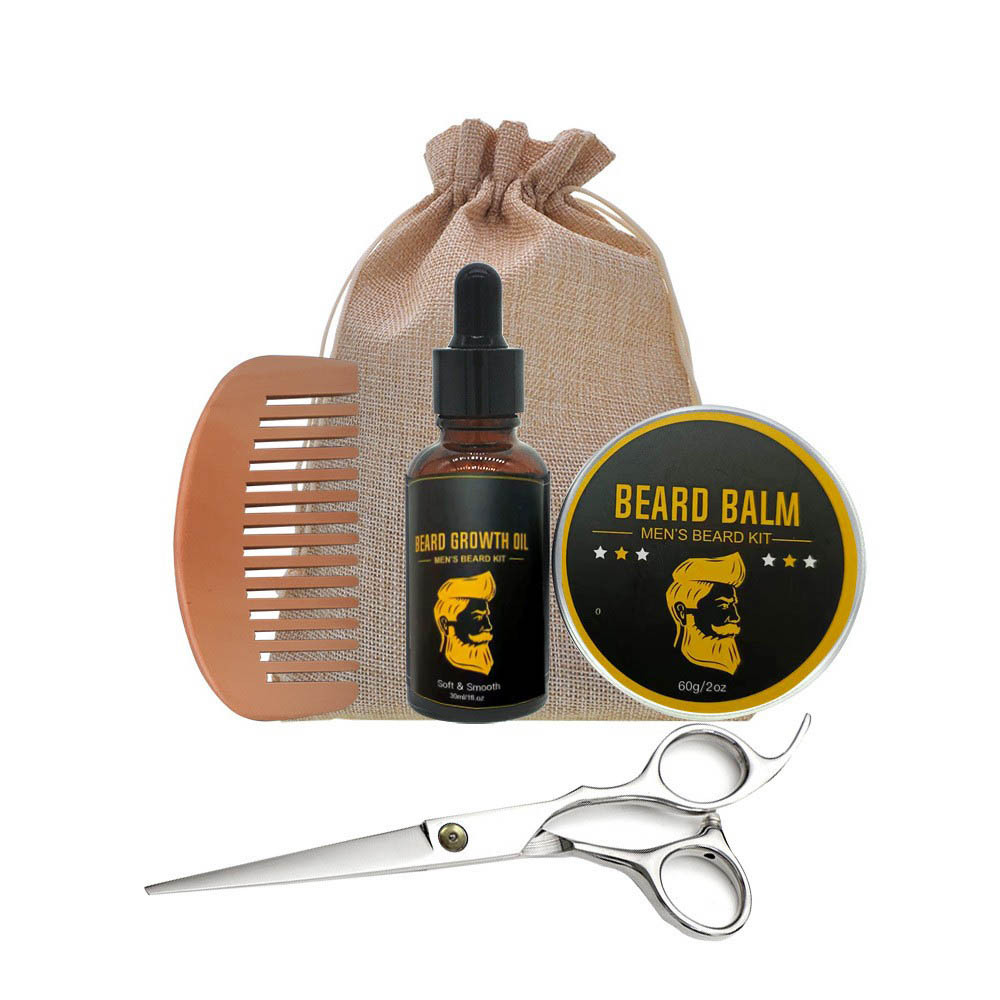 Набор для ухода за бородой: воск для бороды, бальзам для бороды, ножницы, расческа из грушевого дерева, льняная сумка для хранения, ручная работа