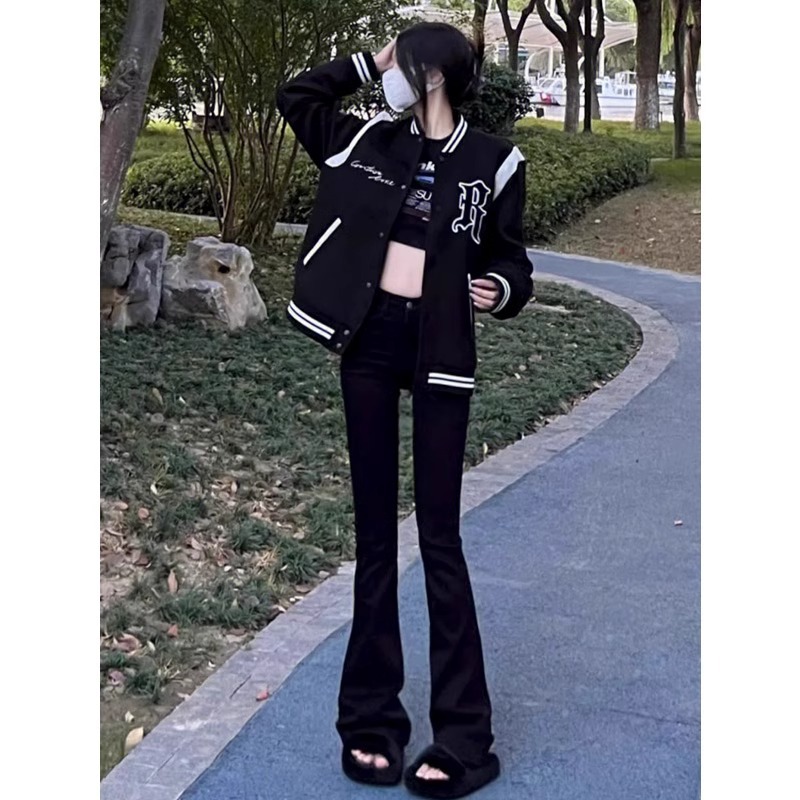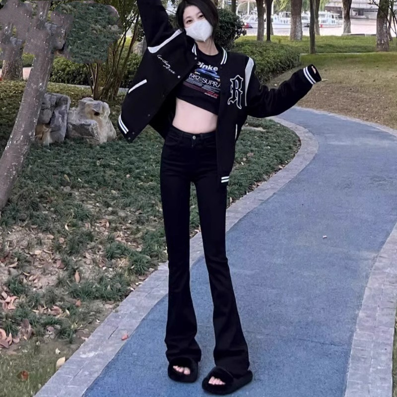 Главная страница > Черные расклешенные джинсы для женщин, новые весенне-осенние брюки с высокой талией, облегающие, универсальные, с расклешенным низом, длиной в пол.