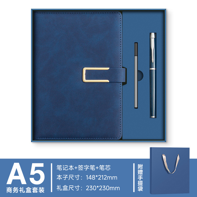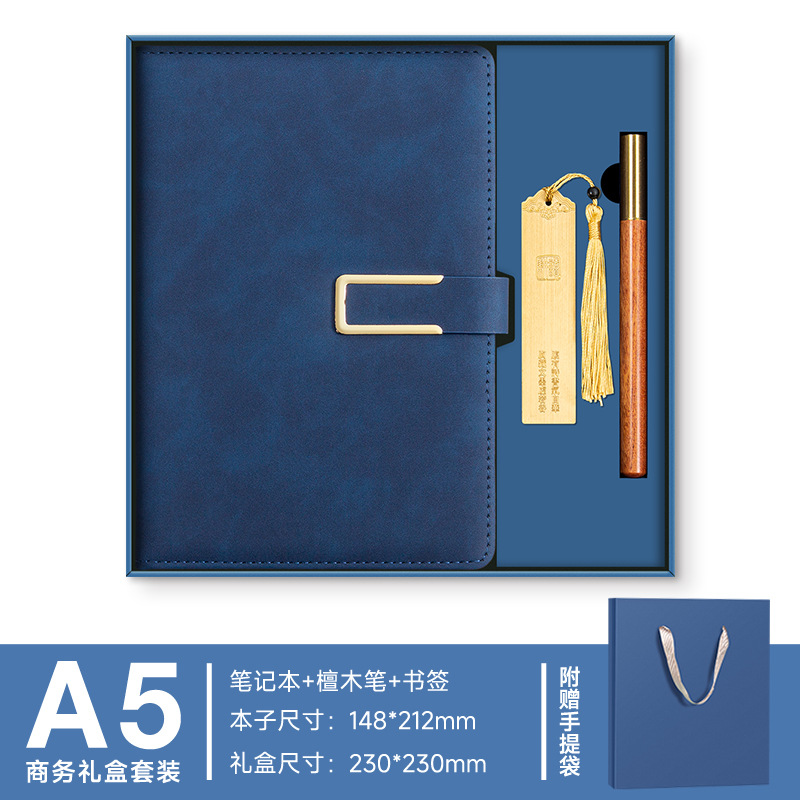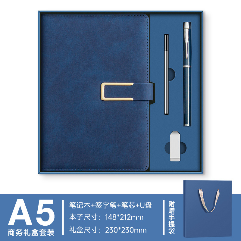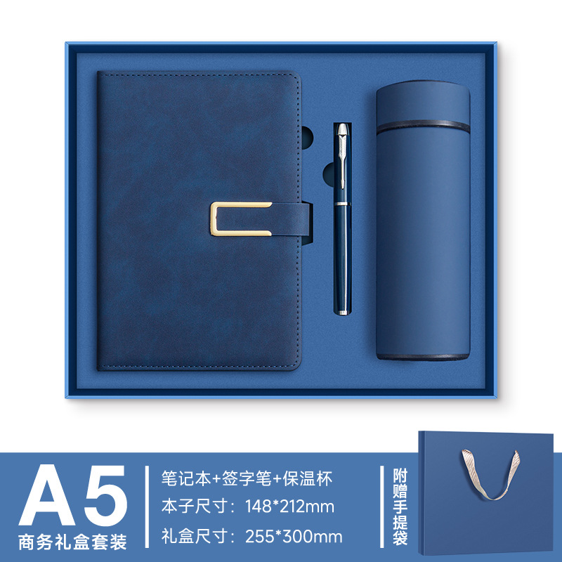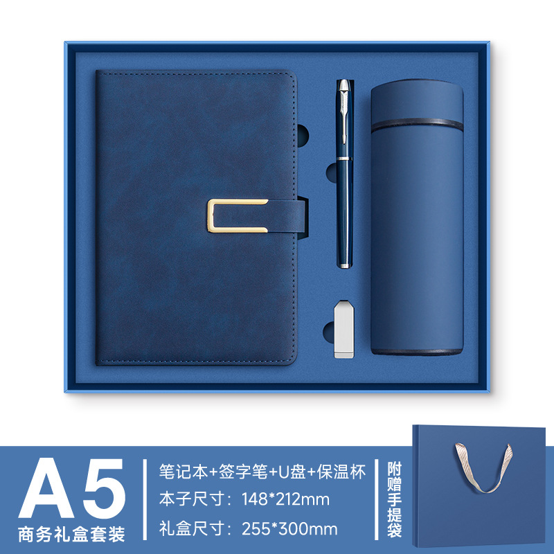 A5 -- Полночный синий --- Металлическая ручка + U-диск + набор чашек-термосов
