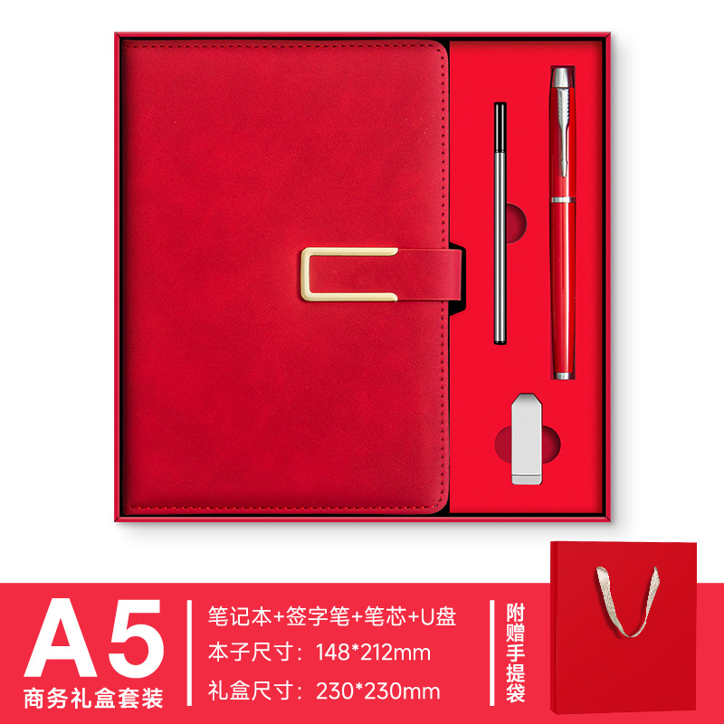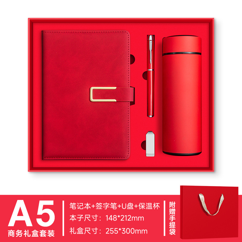 A5 -- Красный --- Металлическая ручка + U-диск + набор чашек-термосов