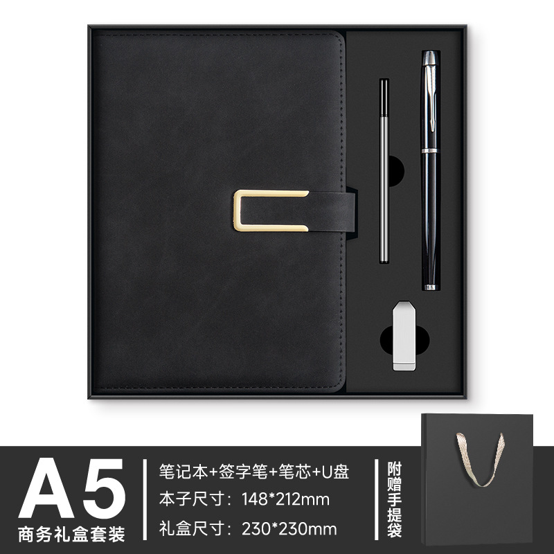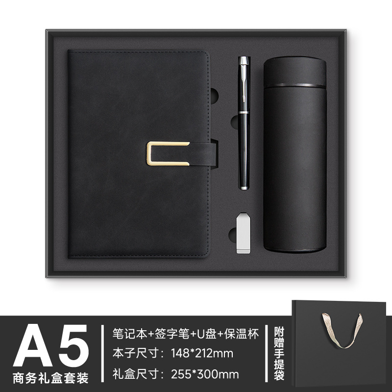 A5 -- Черный --- Металлическая ручка + U-диск + набор чашек-термосов