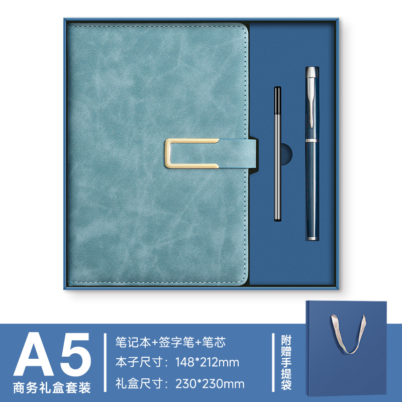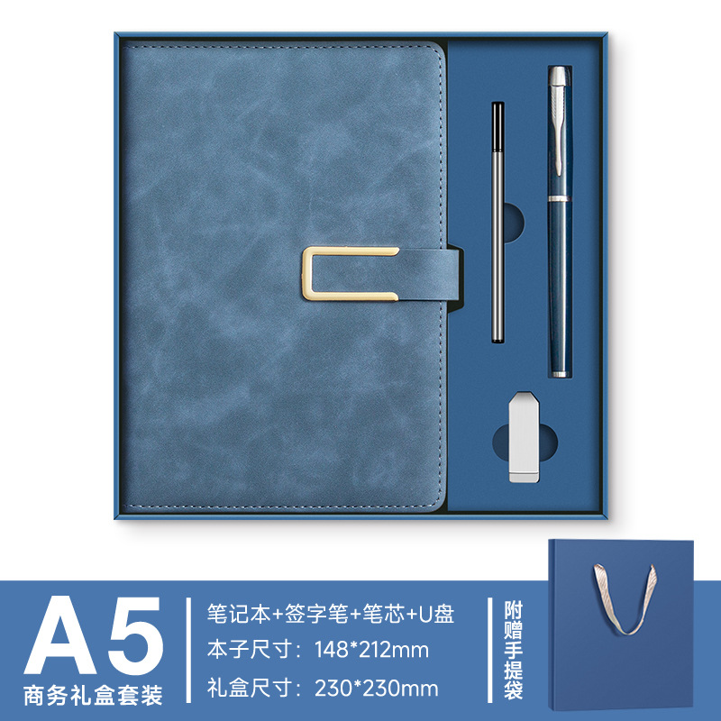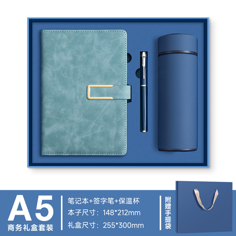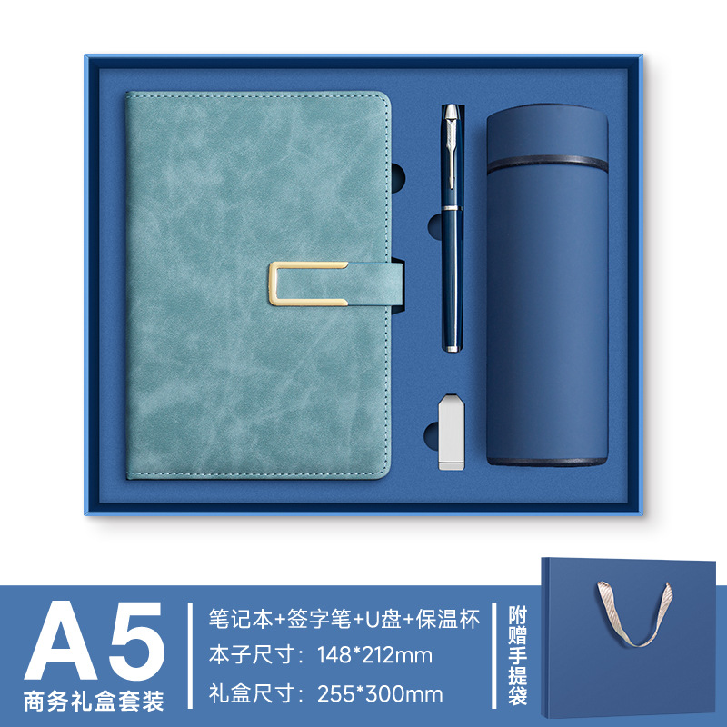 A5 -- Haze Blue --- Металлическая ручка + U-диск + набор чашек-термосов