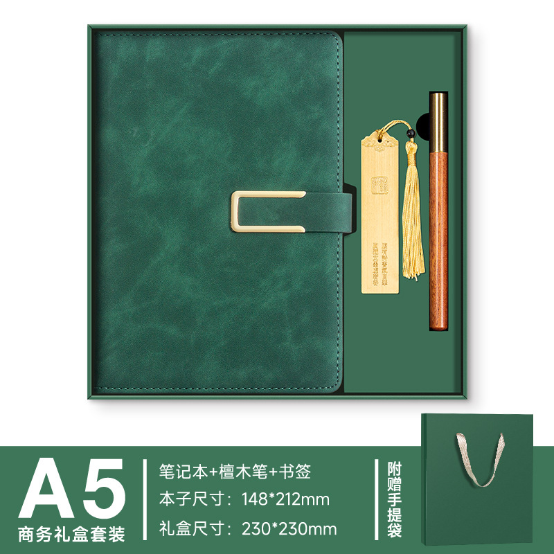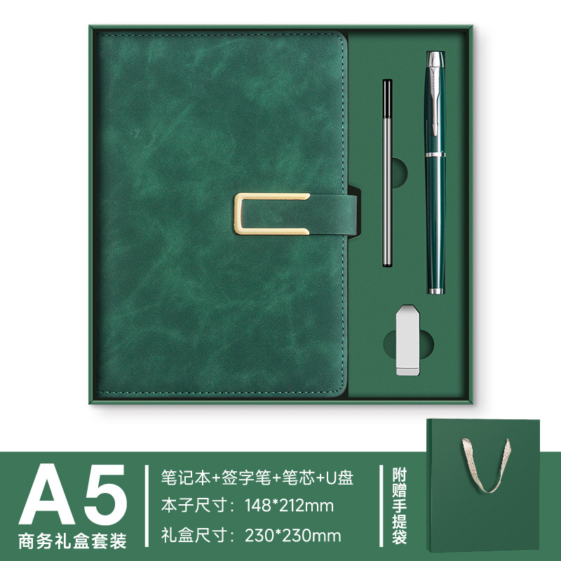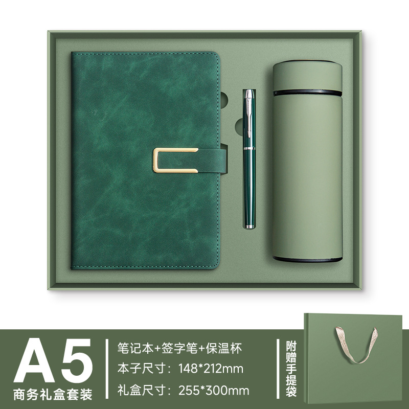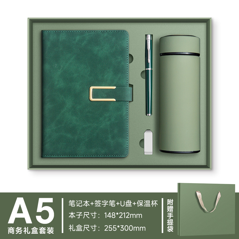 A5--зеленый---металлическая ручка+U-диск+набор термосов