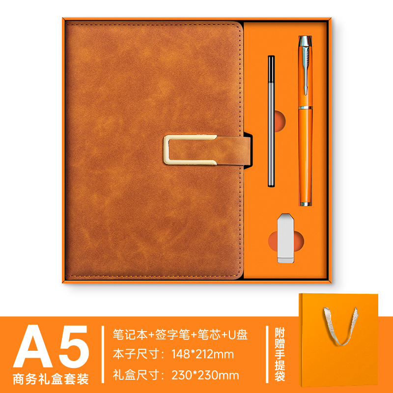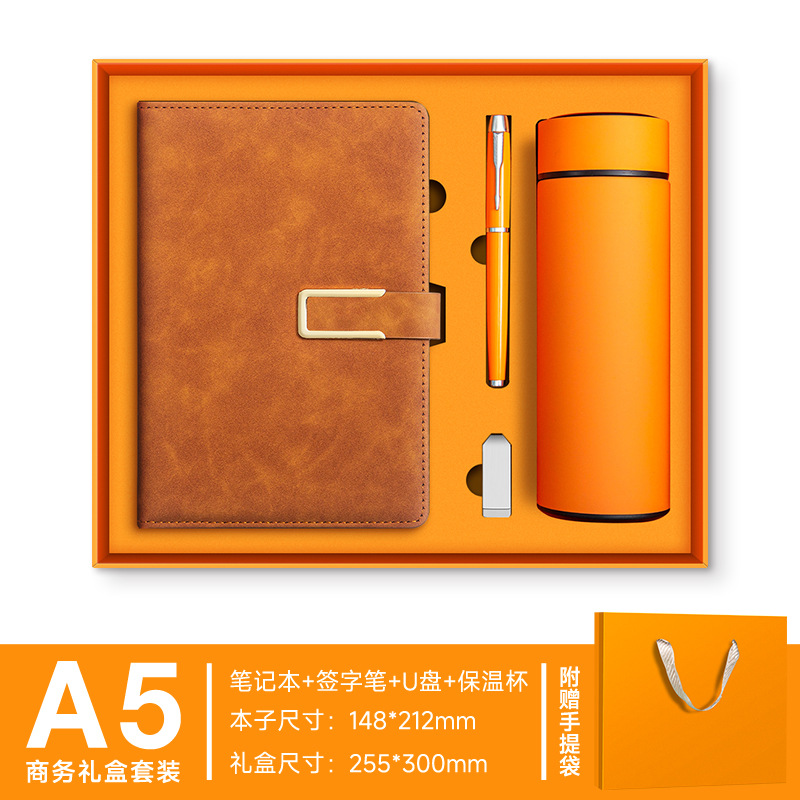 A5--коричневый---металлическая ручка+U-диск+набор термосов