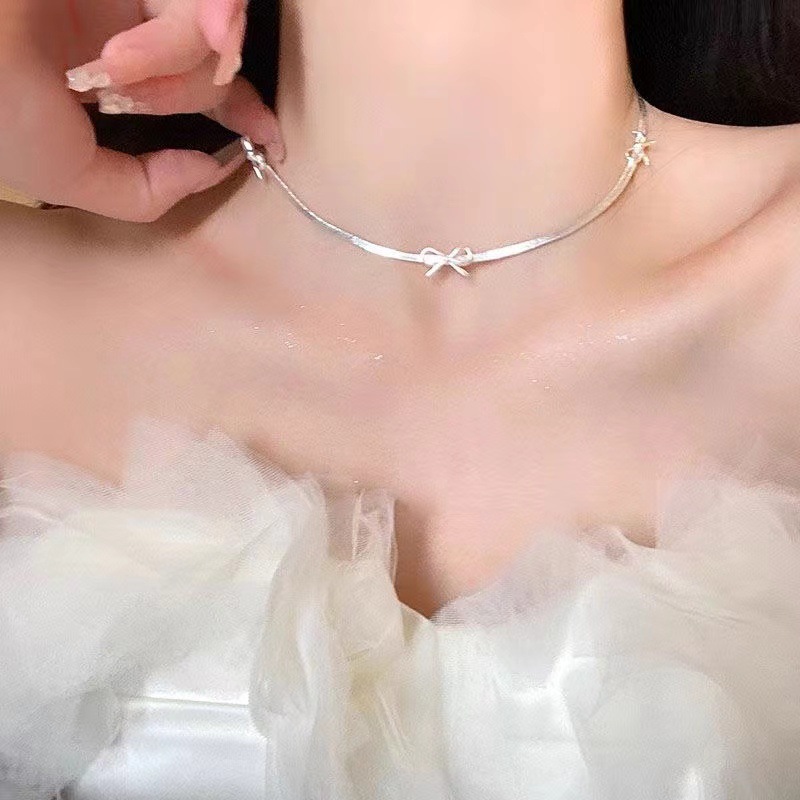Главная страница > Ожерелье с бантом женщина не выцветает, нишевые дизайн легкий экстравагантный подружка ключица 2024 новая сетка красная та же модель
