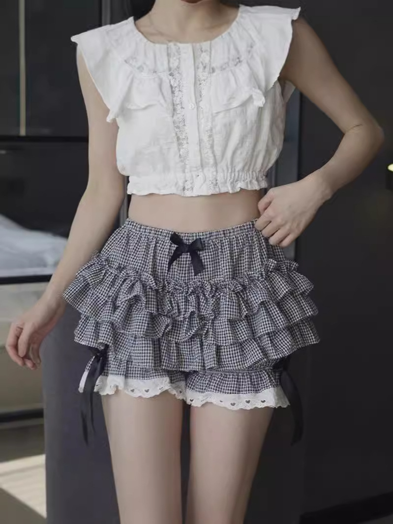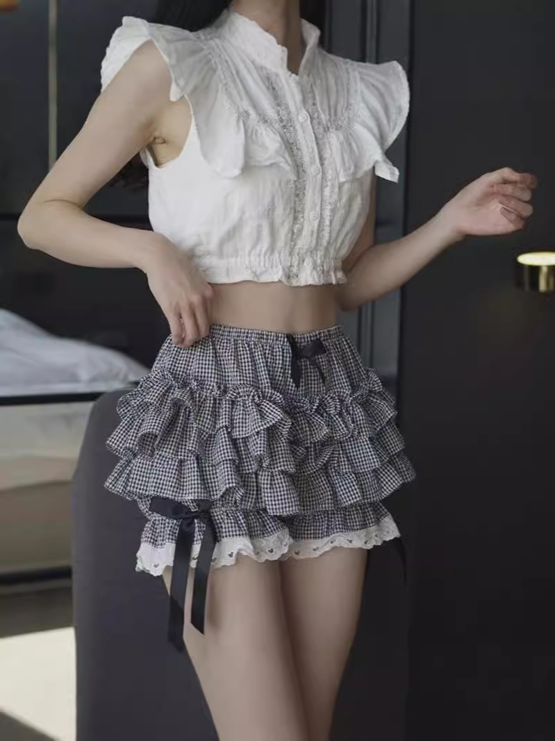 Девушка ветер Лолита торт юбка фонарь многослойная кружевная юбка женская бантик анти-свету Принцесса шорты