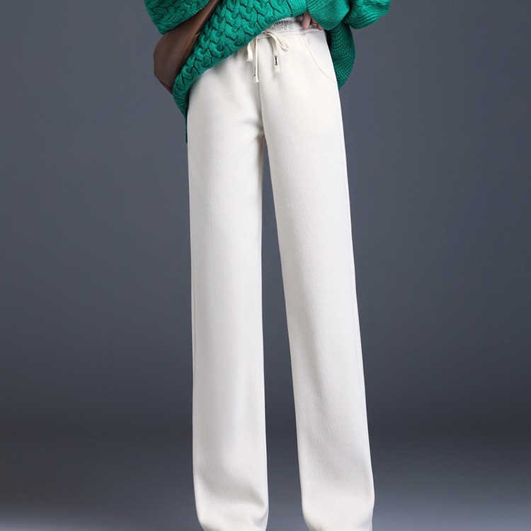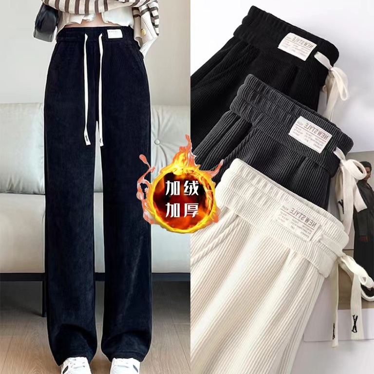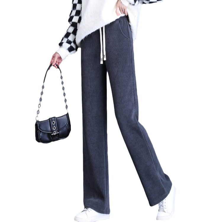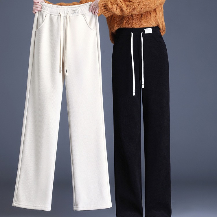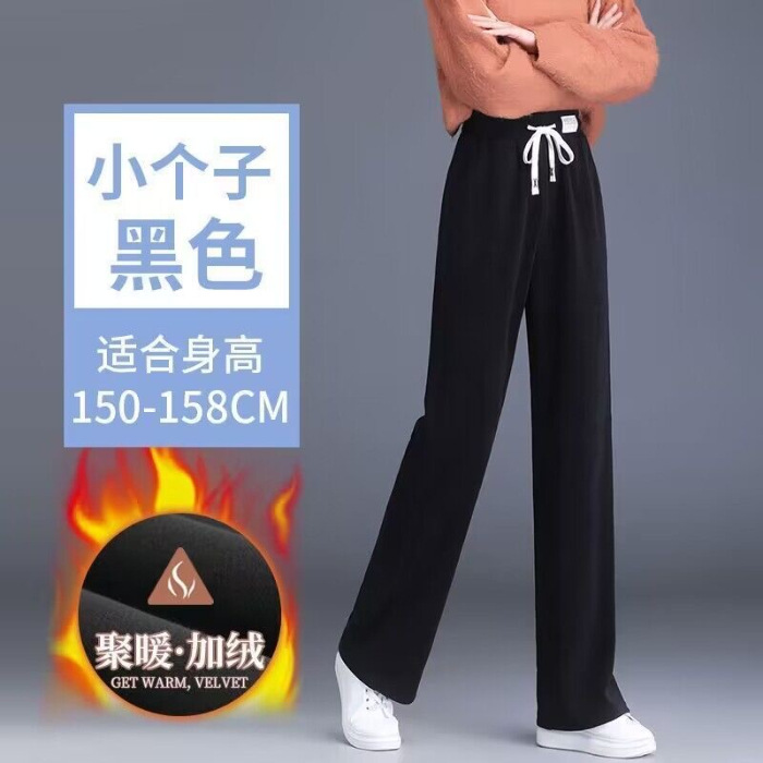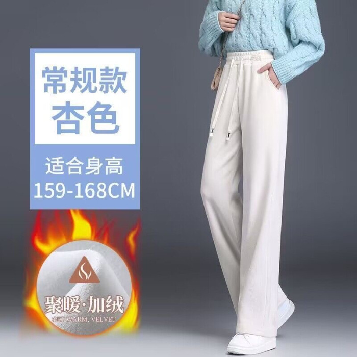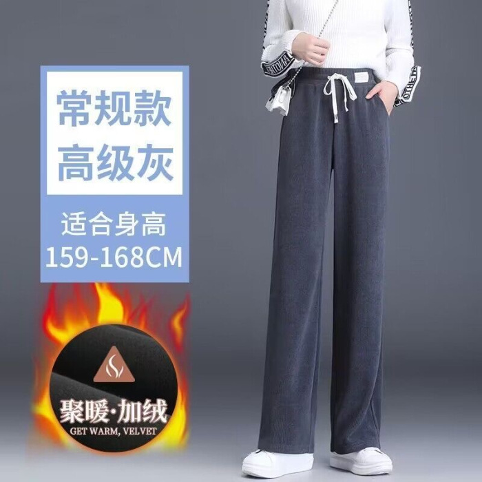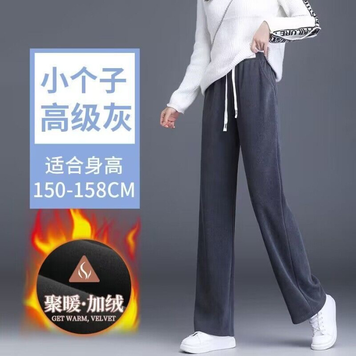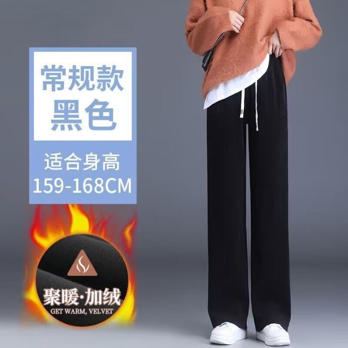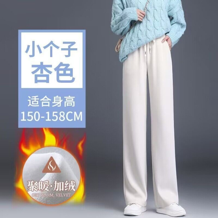 Главная страница > Брюки с широкими штанинами из синели, женские осенне-зимние прямые повседневные брюки с высокой талией и драпировкой, маленькие узкие брюки на флисовой подкладке, весна и осень