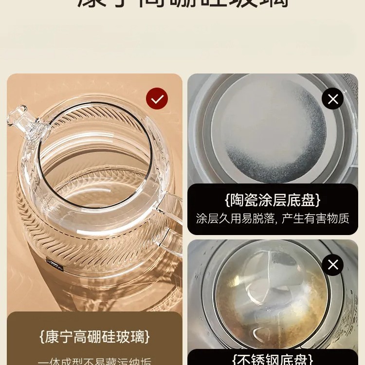 Кортинг второго поколения {флагманская модель + стеклянная крышка} {горшок + кастрюля для тушения + чайный слив + кастрюля | Нагрев 1000 Вт | автоматическое сохранение тепла]