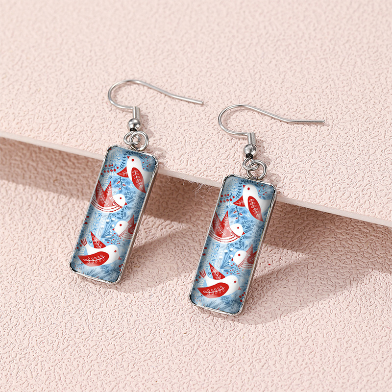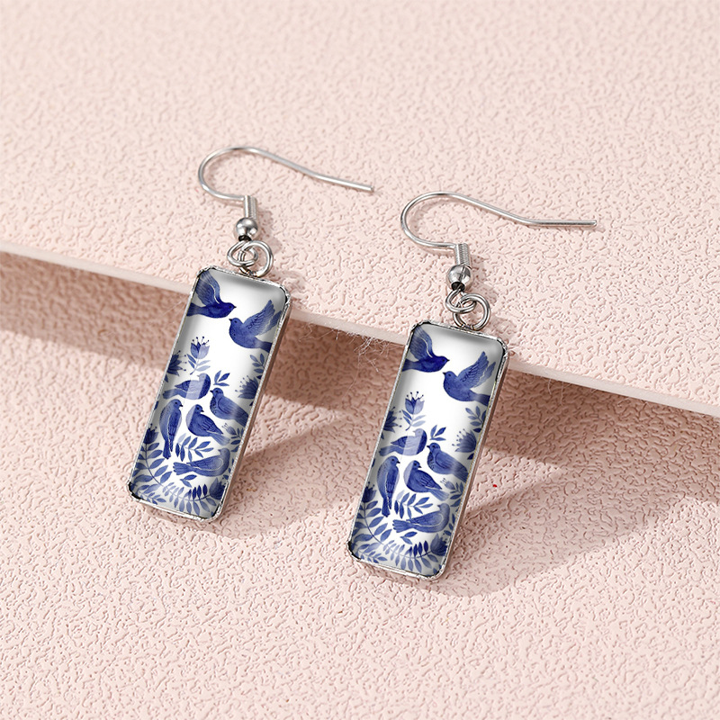 Главная страница > Трансграничные иллюстрации цветов и птиц 2025, крючки для ушей из нержавеющей стали, серьги с синей птицей, серьги с голубем мира, зимние сладкие квадратные серьги с птицами