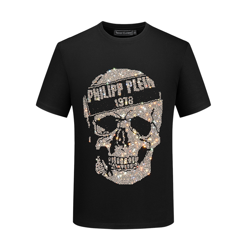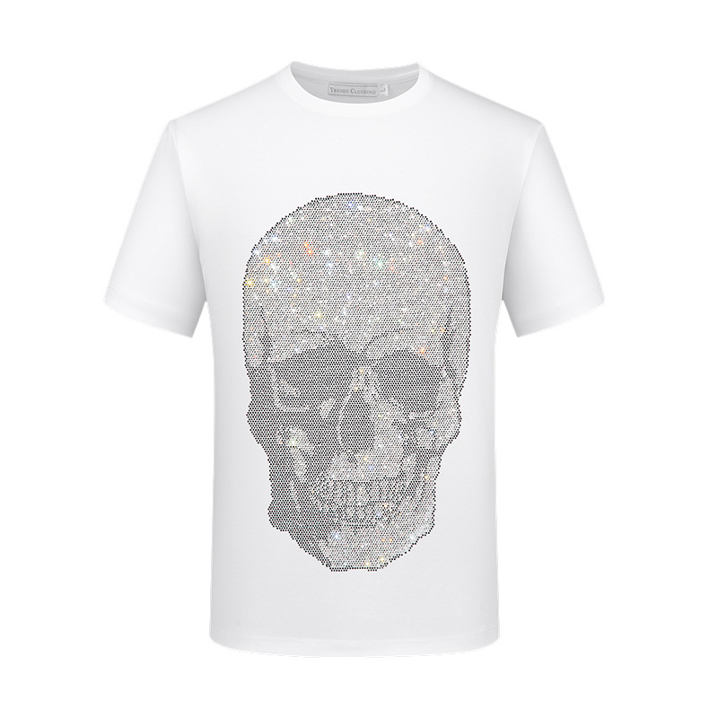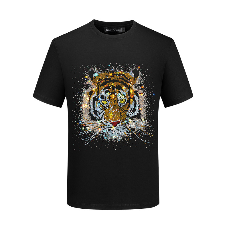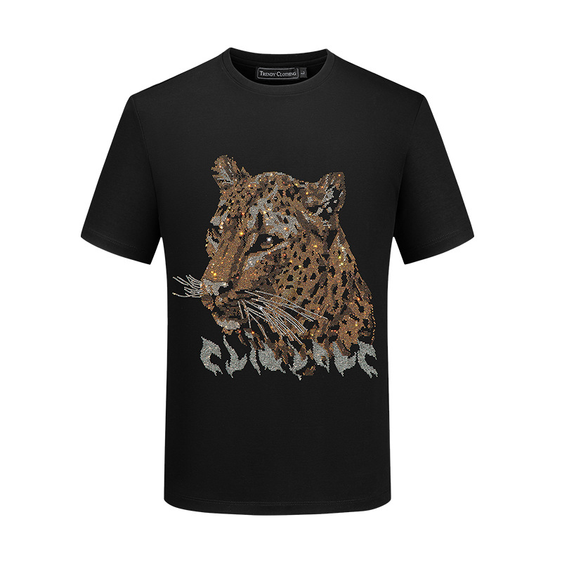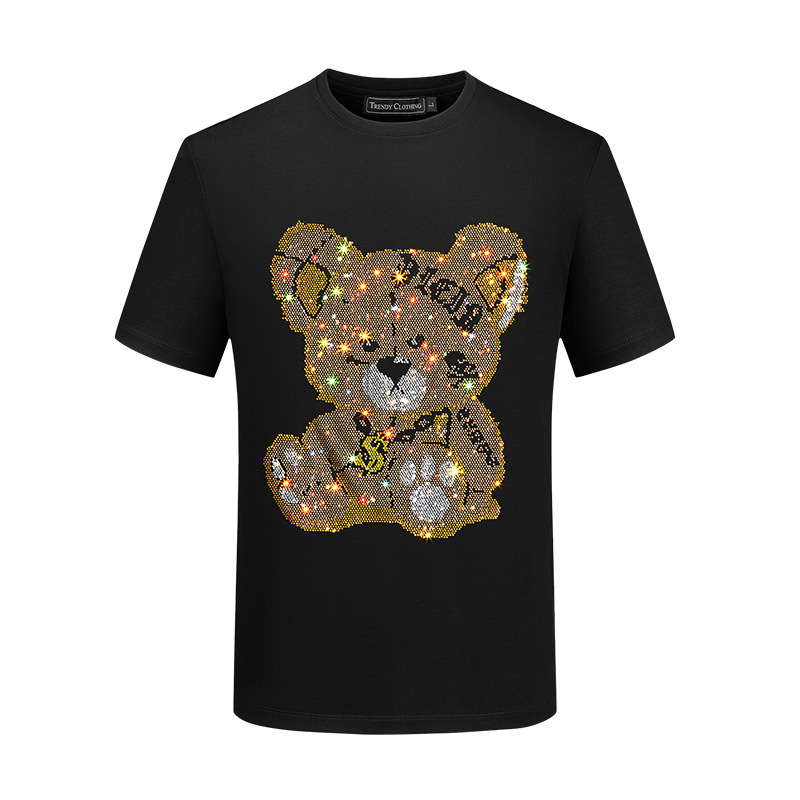 Мужская футболка с короткими рукавами, модная брендовая летняя футболка больших размеров, топ, тонкий мерсеризованный хлопок, с коротким рукавом, тяжелый рабочий Медведь со стразами