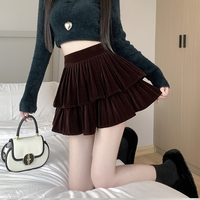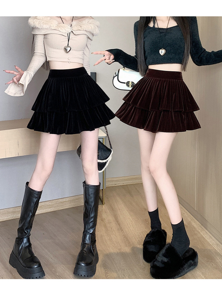 Балет ветер с высокой талией бархатный торт плиссированная юбка половинка женская осень-зима новый маленький человек дикий тонкий пушистый юбка